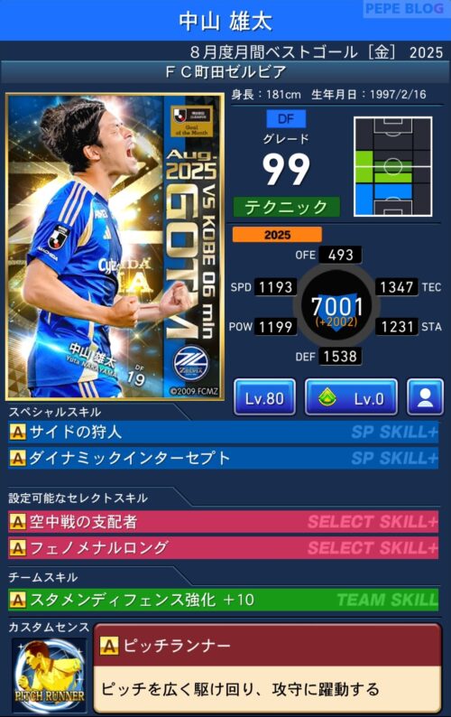 DF:グレード99 中山 雄太(FC町田ゼルビア)