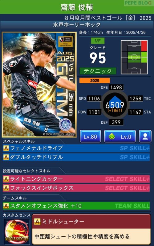 MF:グレード95 齋藤 俊輔(水戸ホーリーホック)