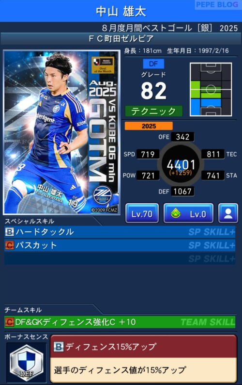 DF:グレード82 中山 雄太(FC町田ゼルビア)