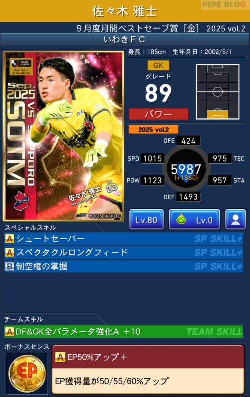 Jクラ期間限定カード「2025年9月度月間ベストセーブ賞」が登場しました。