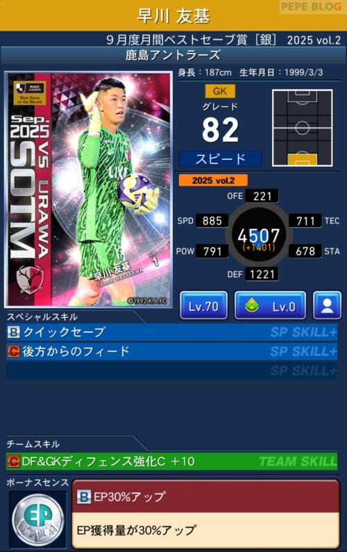 GK:グレード82 早川 友基(鹿島アントラーズ)