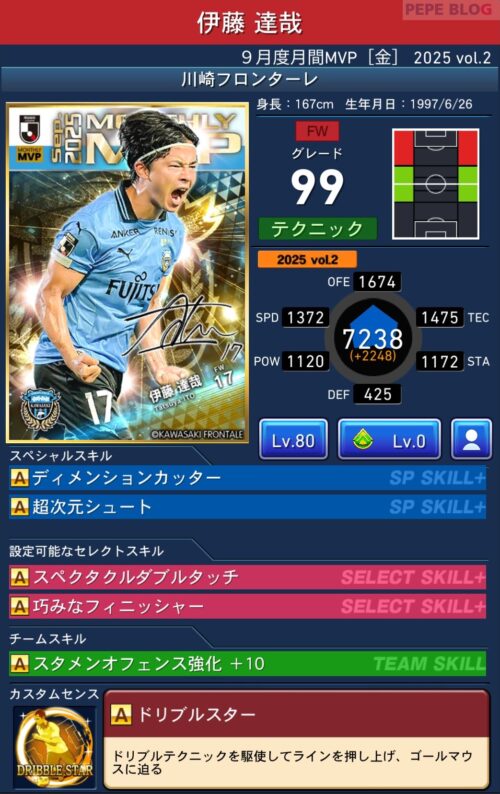 FW:グレード99 伊藤 達哉(川崎フロンターレ)