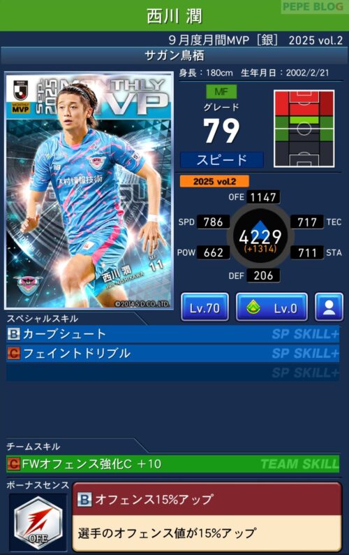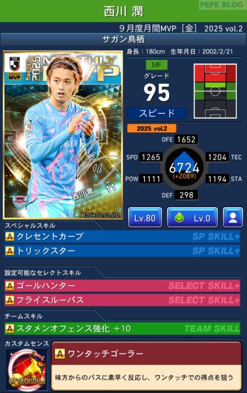 Jクラ期間限定カード「2025年9月度月間MVP」が登場しました。