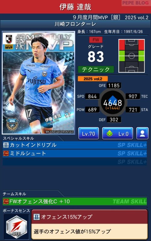 FW:グレード83 伊藤 達哉(川崎フロンターレ)