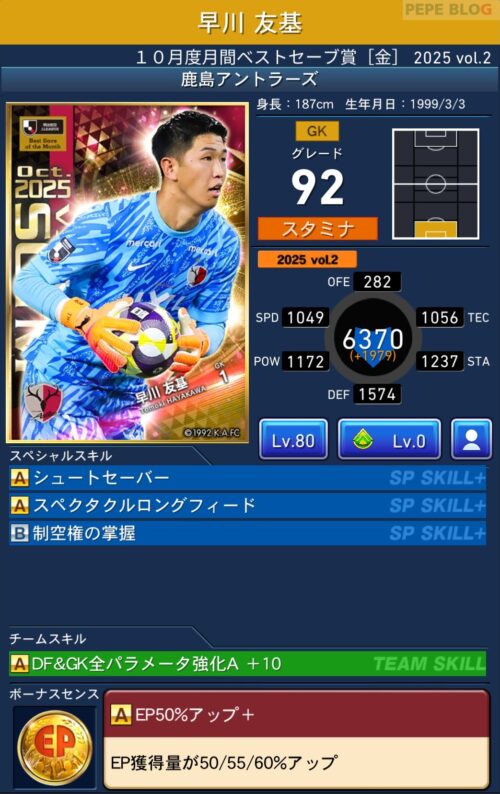 GK:グレード92 早川 友基(鹿島アントラーズ)
