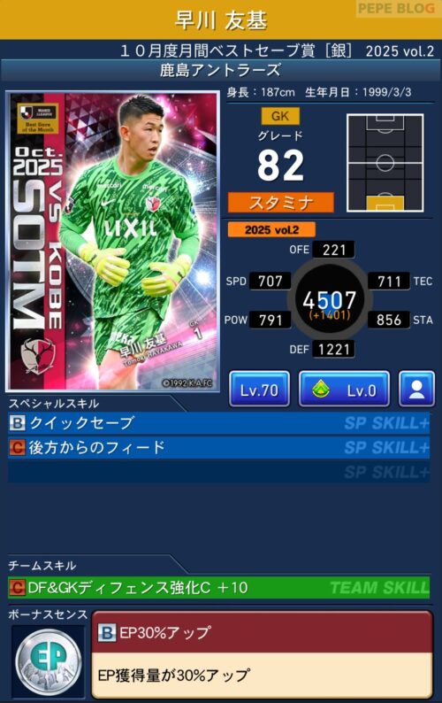 GK:グレード82 早川 友基(鹿島アントラーズ)