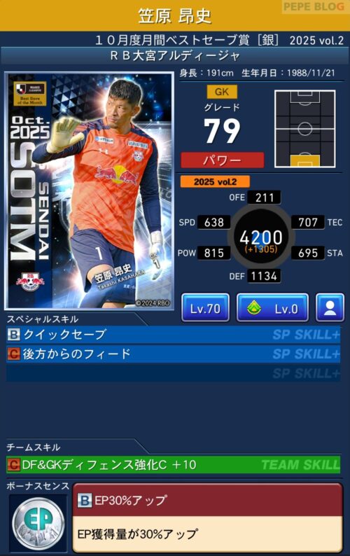 GK:グレード79 笠原 昂史(RB大宮アルディージャ)