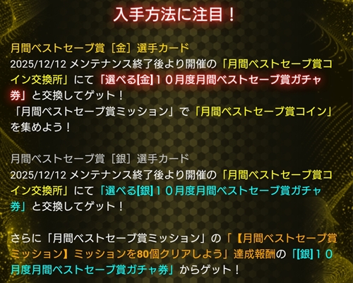 Jクラ期間限定カード「2025年10月度月間ベストセーブ賞」が登場しました。