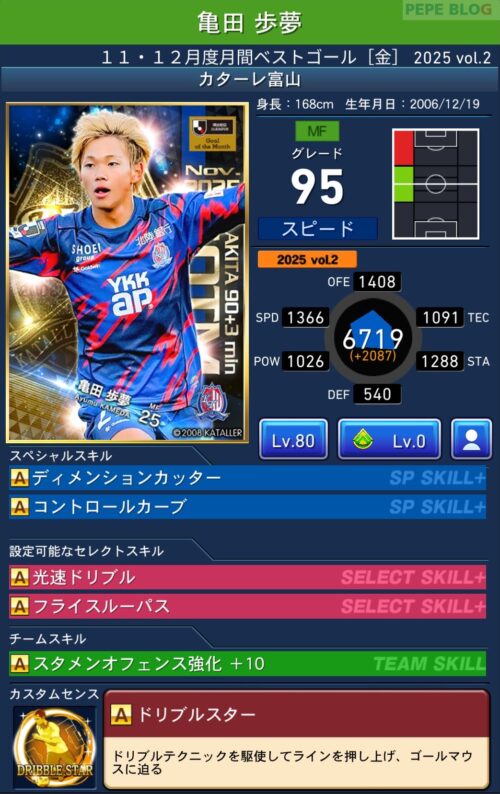 MF:グレード95 亀田 歩夢(カターレ富山)