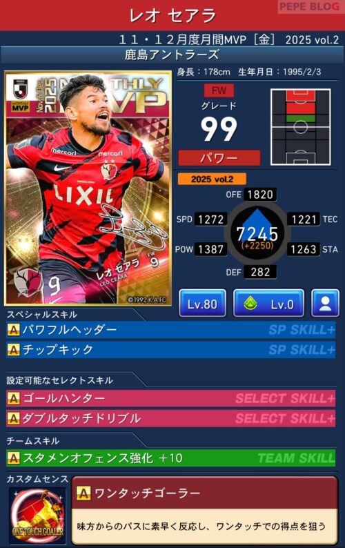 Jクラ期間限定カード「2025年11・12月度月間MVP」が登場しました。