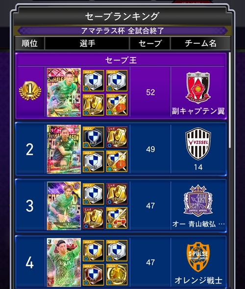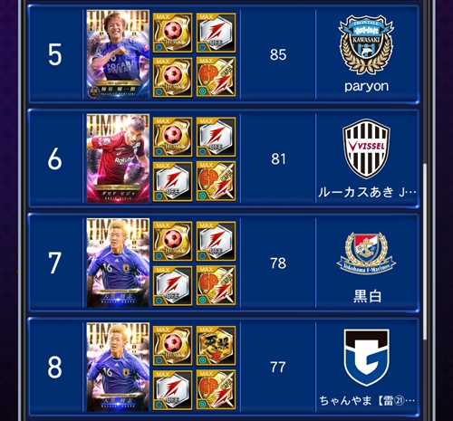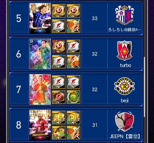 • 1024位:勝ち点25(18戦7勝4分7敗) 得点29 失点28 得失点差 +1 ユーザレベル228