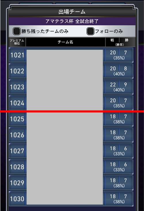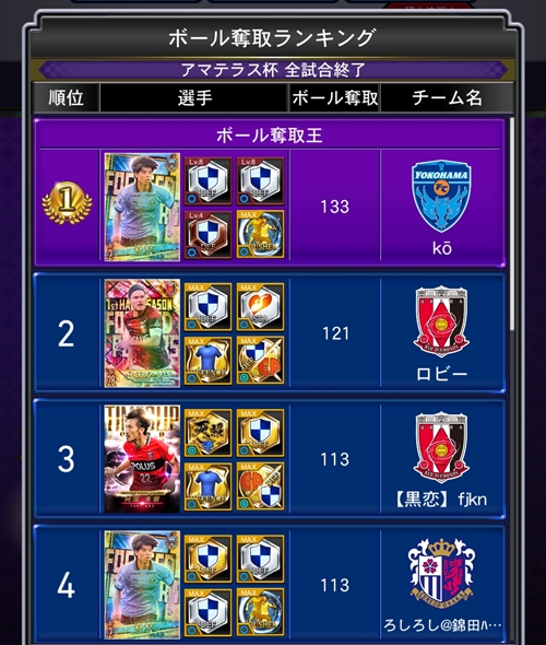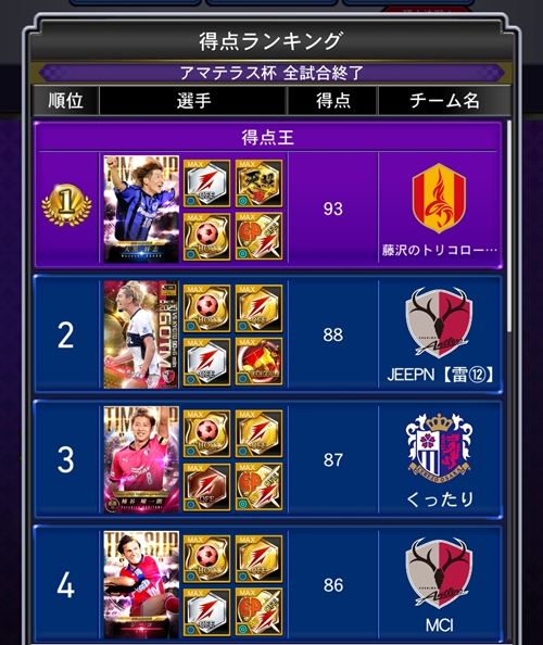 今回のアマテラス杯での各ランキングTOP10は以下の通りです。