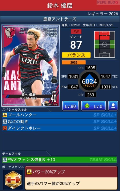 HOME > Jクラ攻略室 > Jクラ-選手カード > Jクラ-選手カード Jクラ攻略室 【Jクラ】鹿島アントラーズ レギュラー2026選手カード一覧 2026年4月27日 スポンサーリンク 鹿島アントラーズ スポンサーリンク 関連コンテンツ -Jクラ-選手カード, Jクラ攻略室