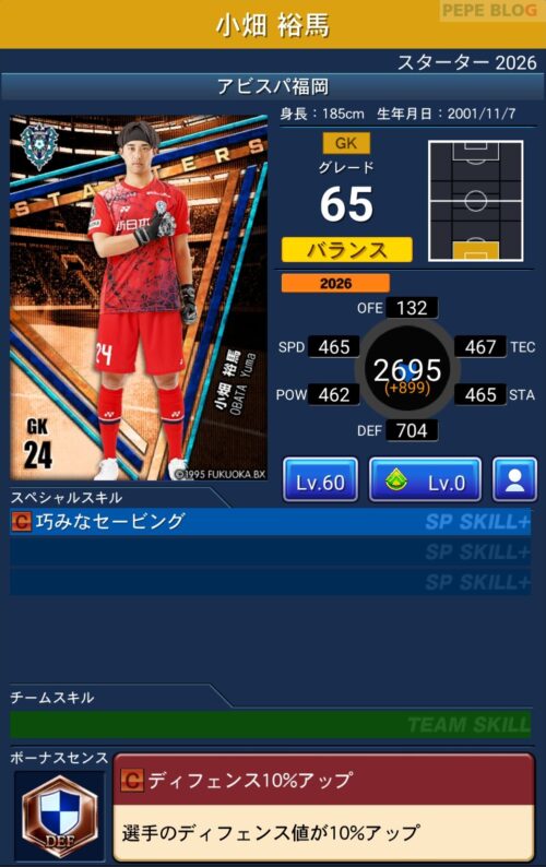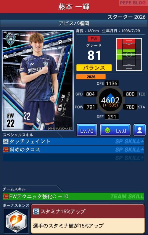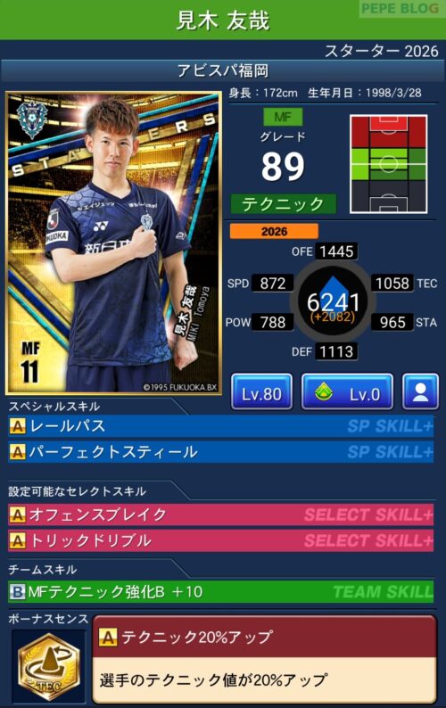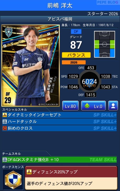 2026シーズン(2026/02/06時点)の最新データを反映した選手カードです。