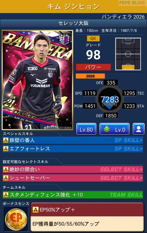 GK:グレード98 キム ジンヒョン