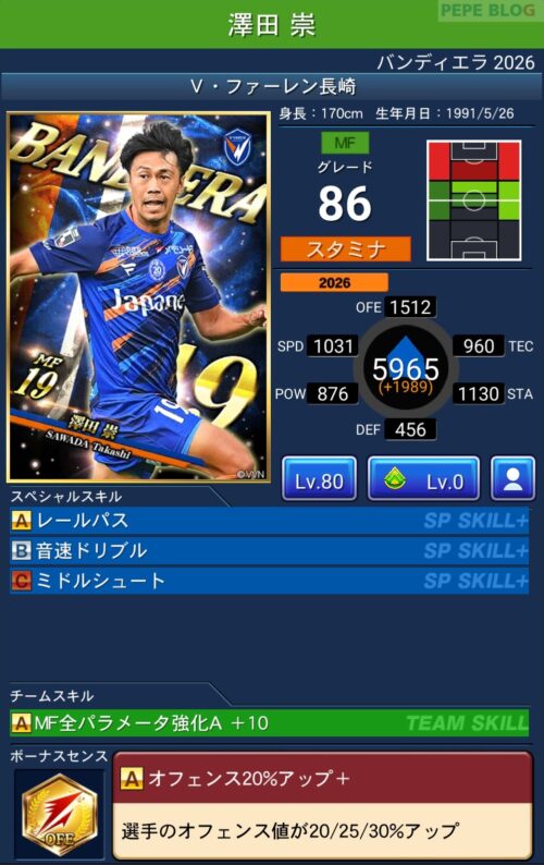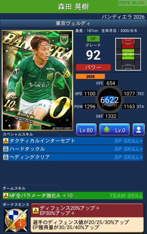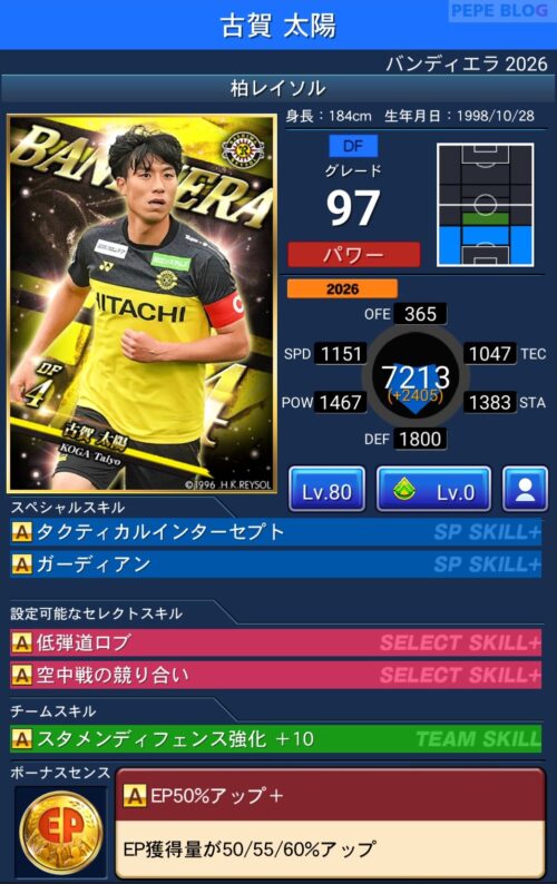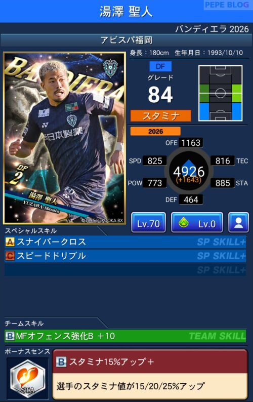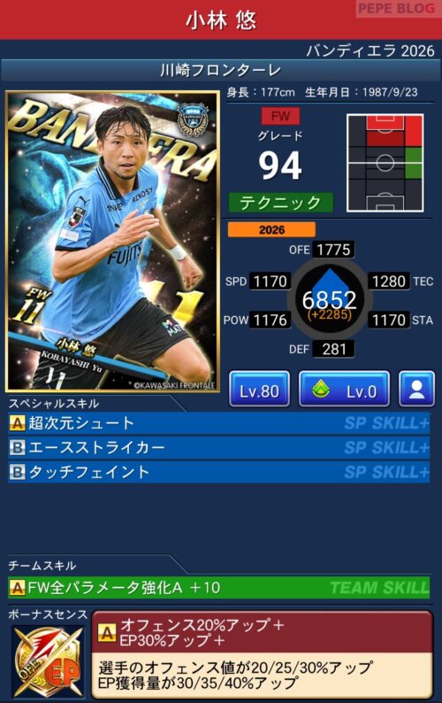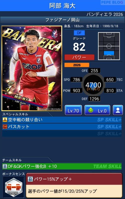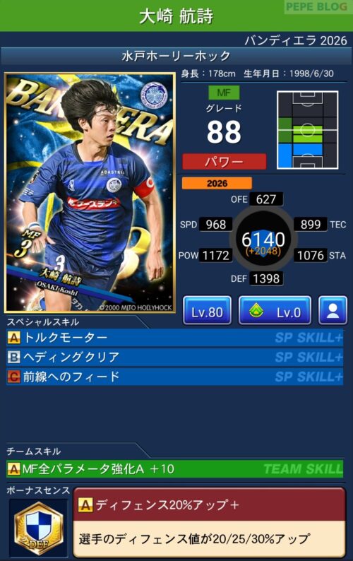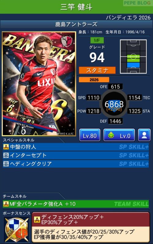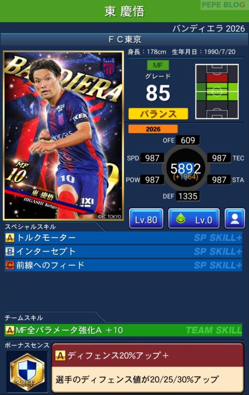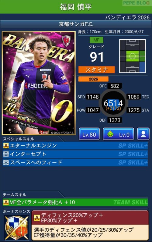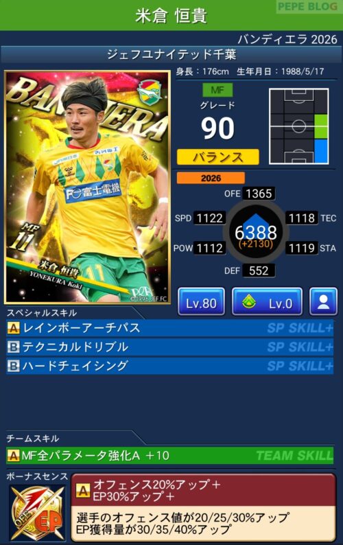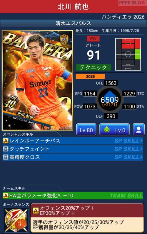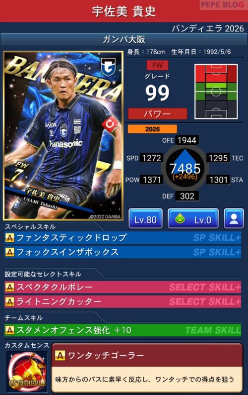 今回の「バンディエラ2026」では以下の選手がセレクトスキルを所持しています。