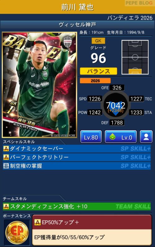 GK:グレード96 前川 黛也