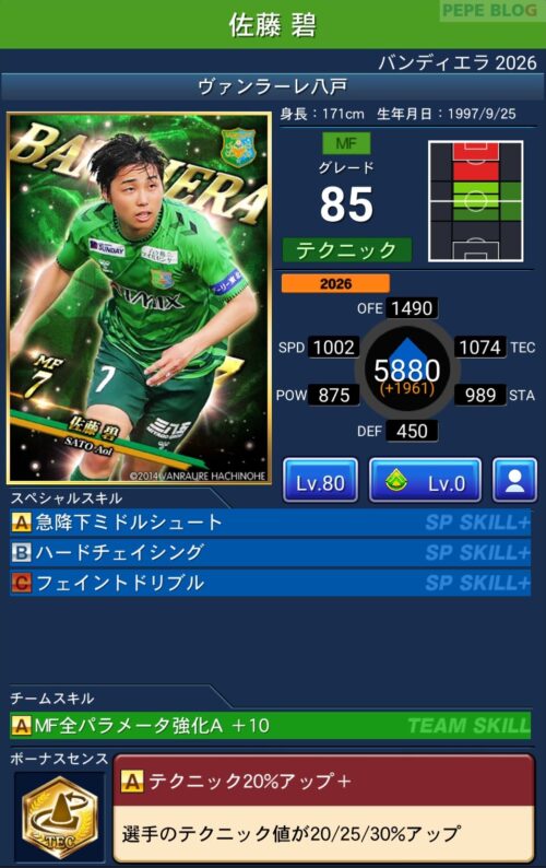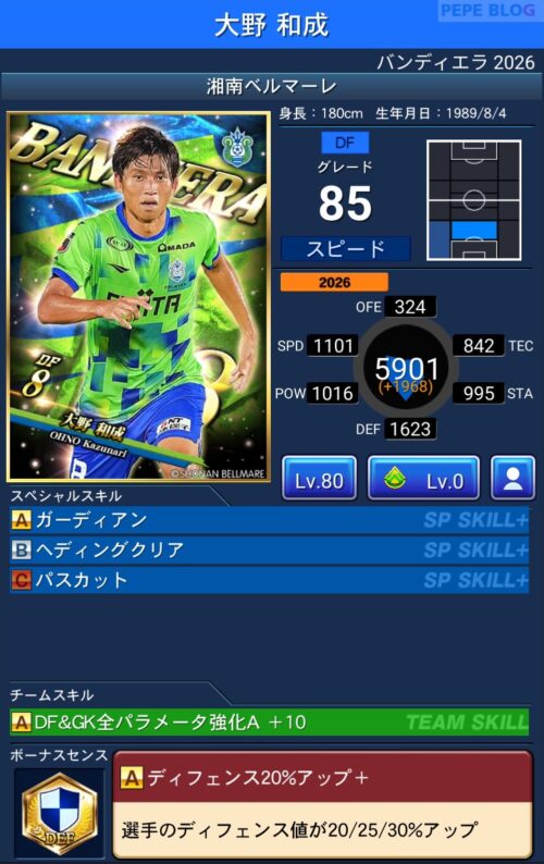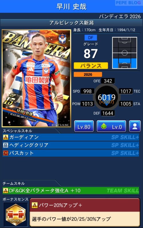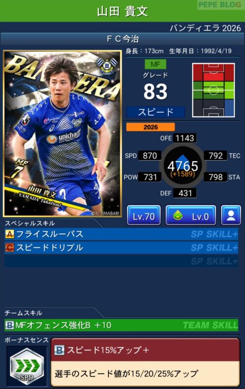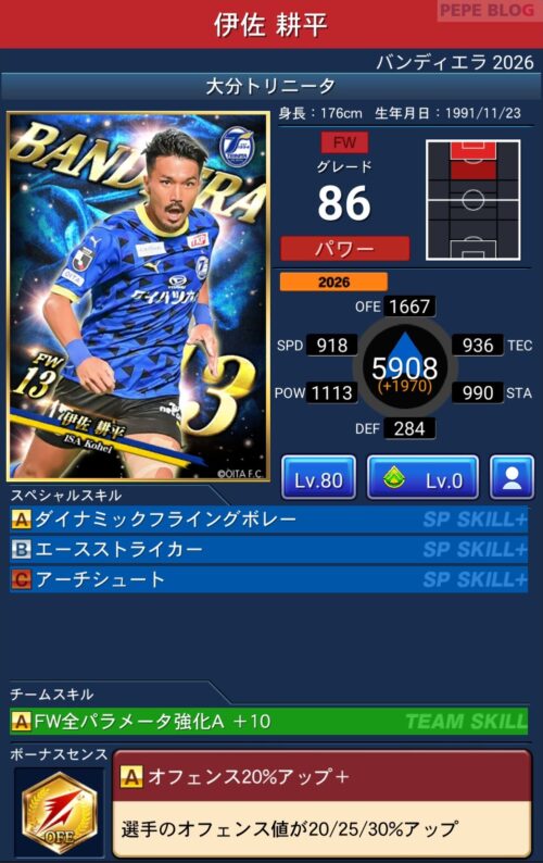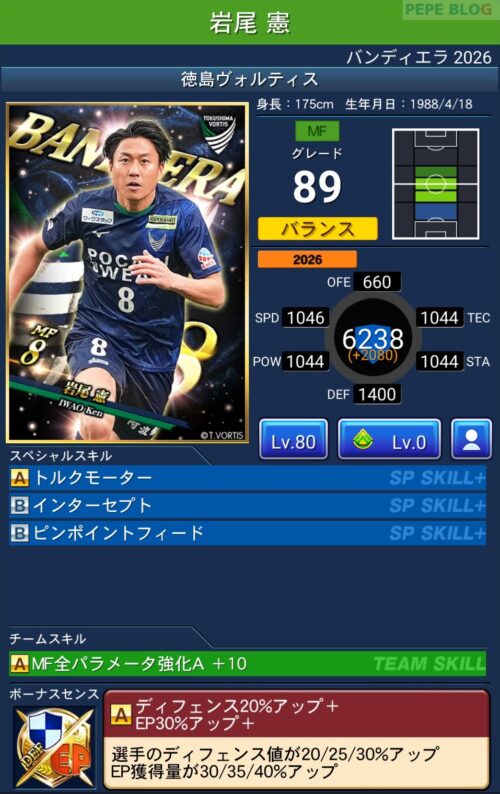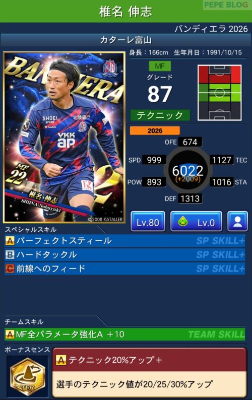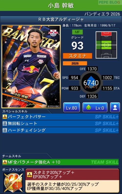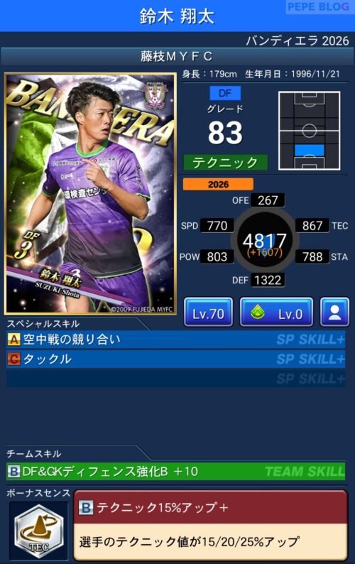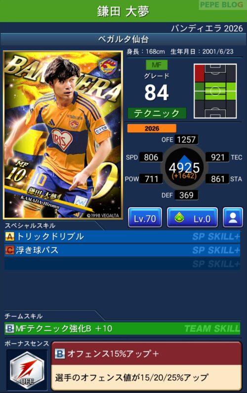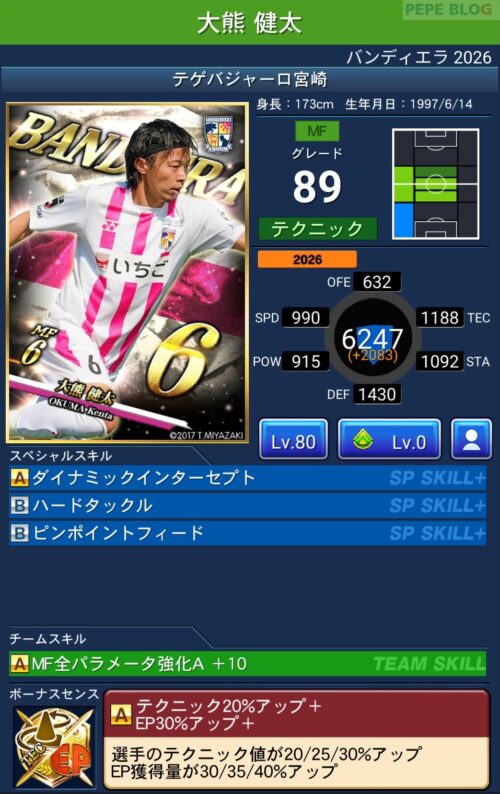 今回の「バンディエラ2026」では以下の選手がセレクトスキルを所持しています。