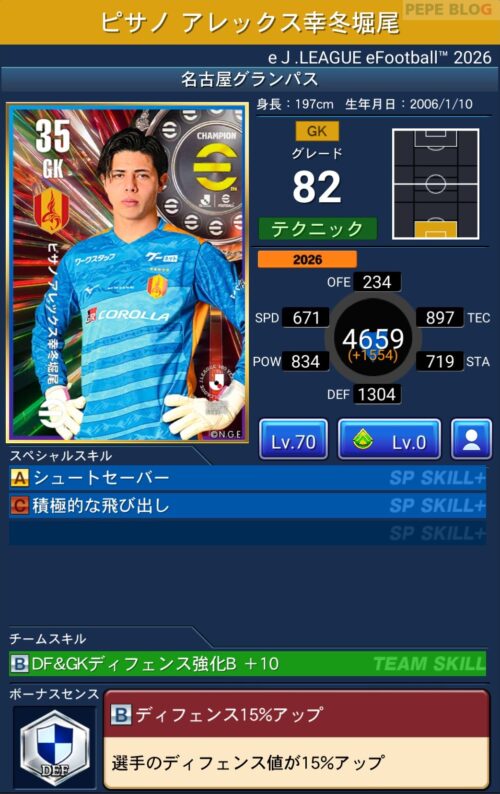 GK:グレード82 ピサノ アレックス幸冬堀尾