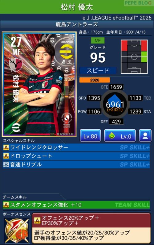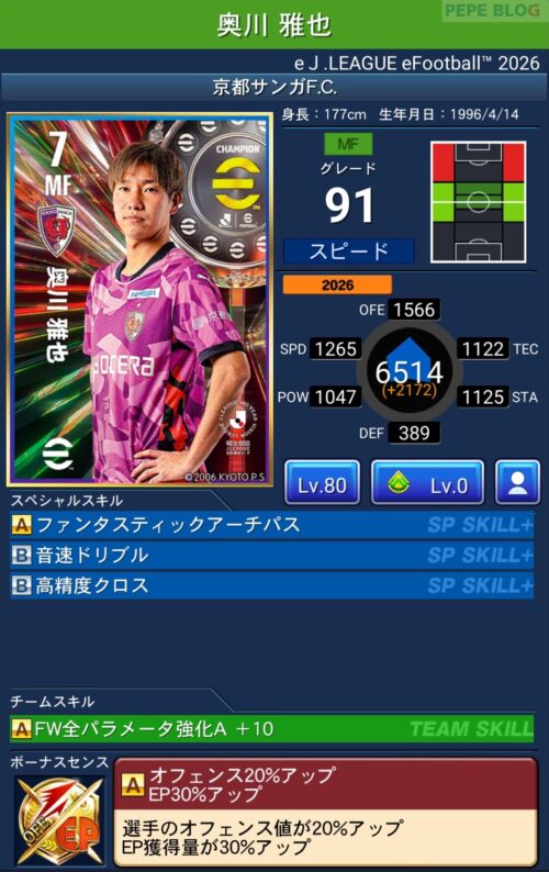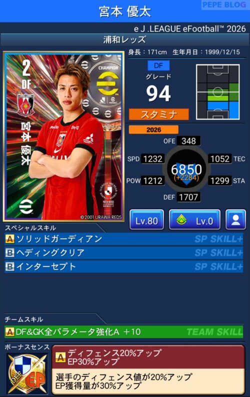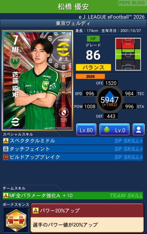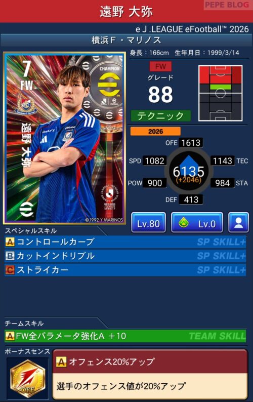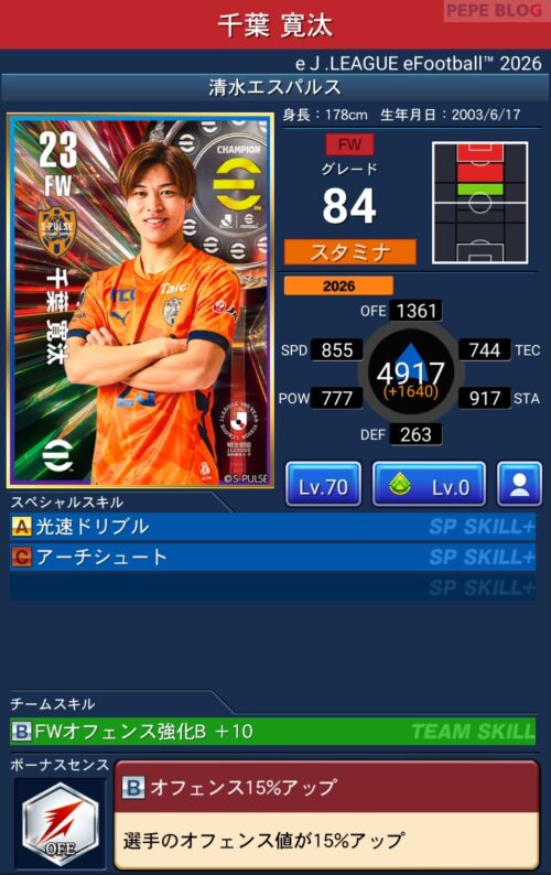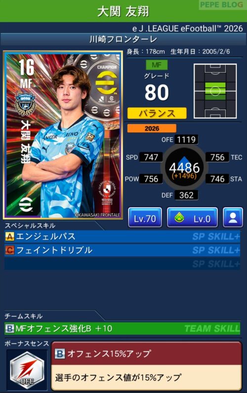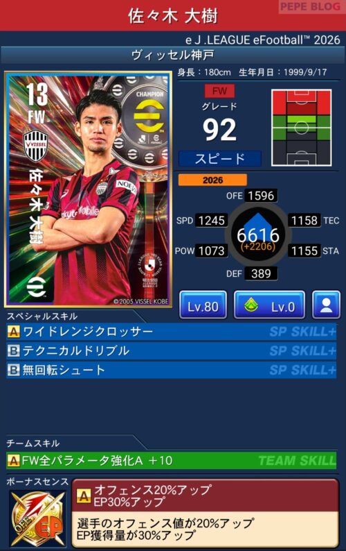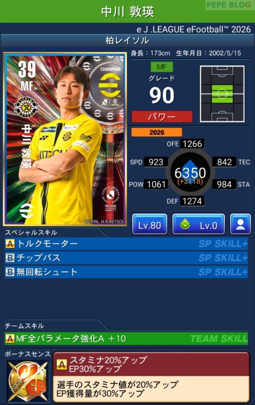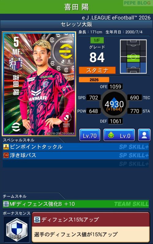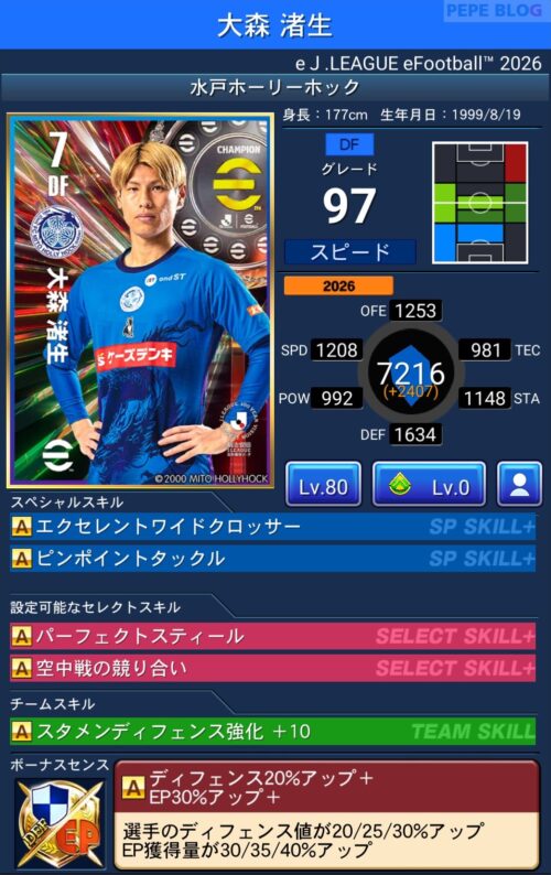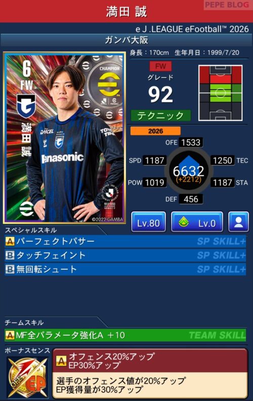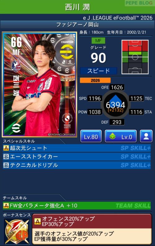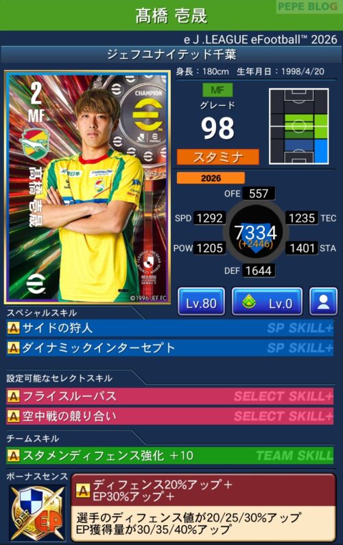 「e J.LEAGUE eFootball 2026シーズン」の開催を記念した期間限定カードです。