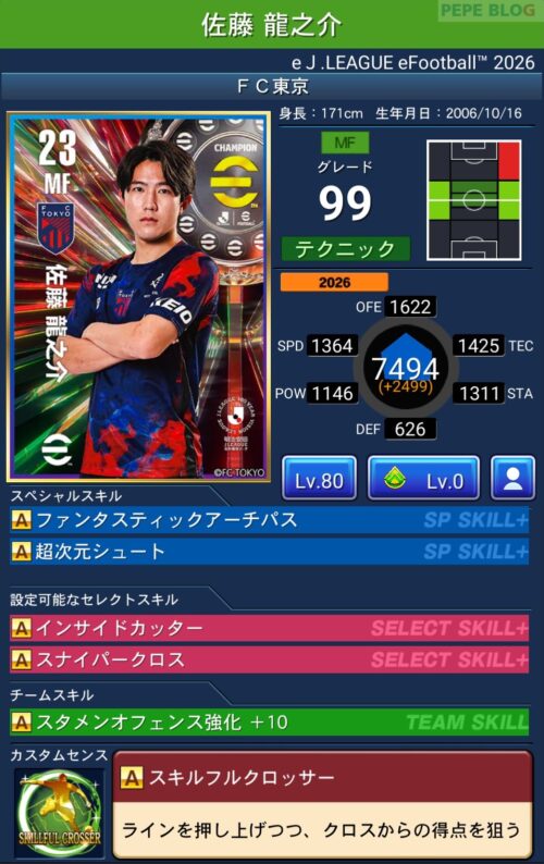 今回登場の「e J.LEAGUE eFootball2026」に登場する選手カードは、フュージョン時に確率でアディショナルセンスを獲得することができます。