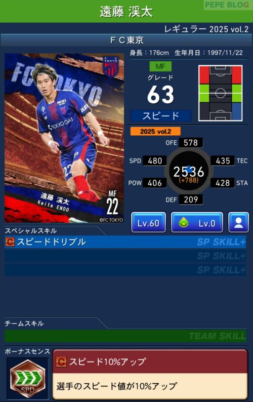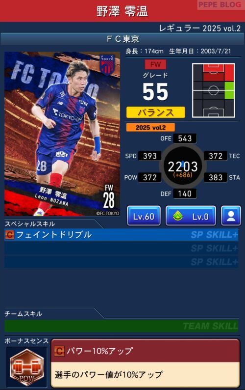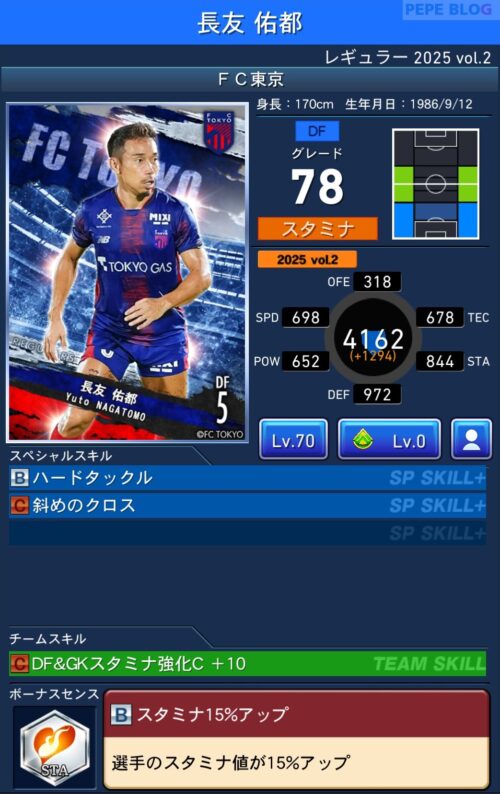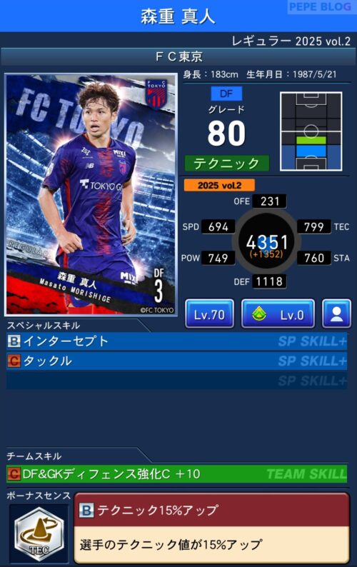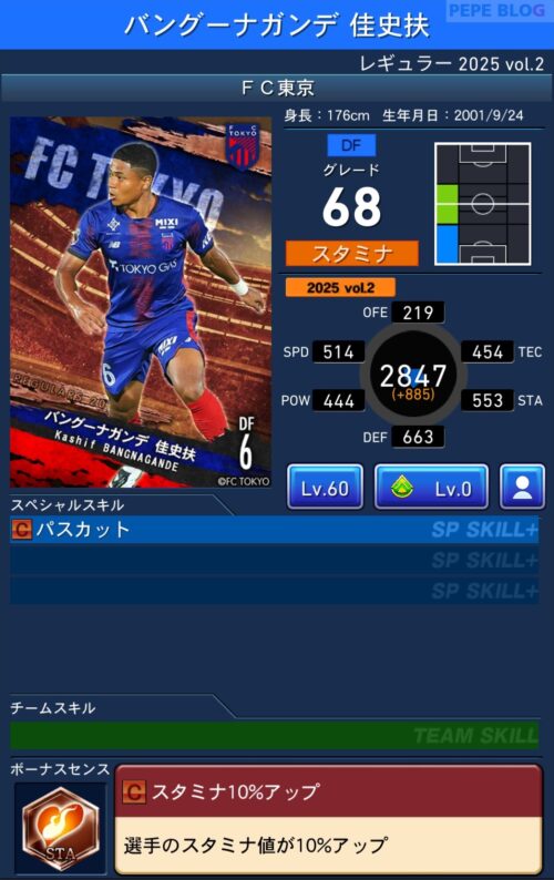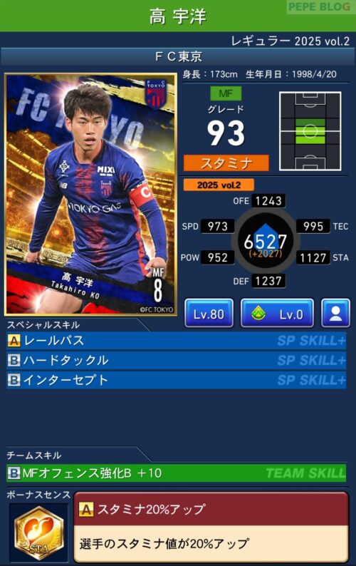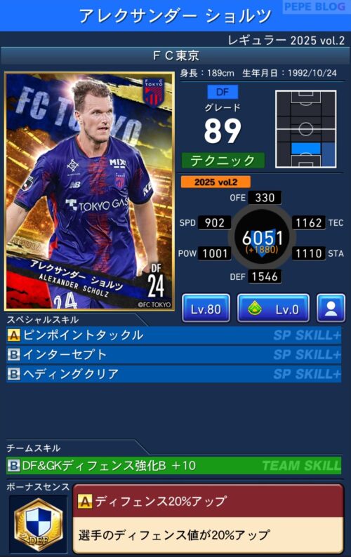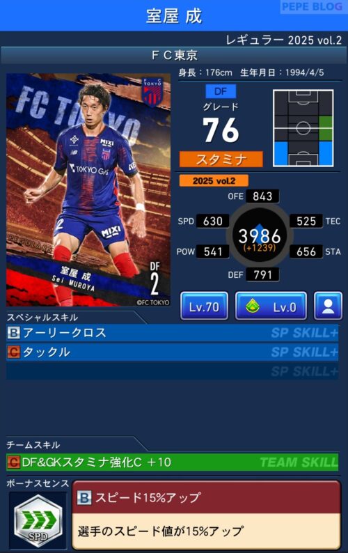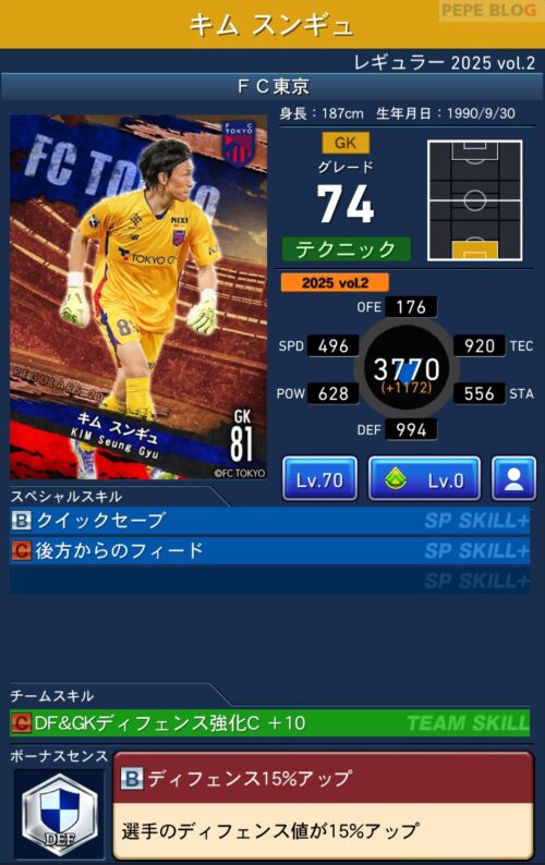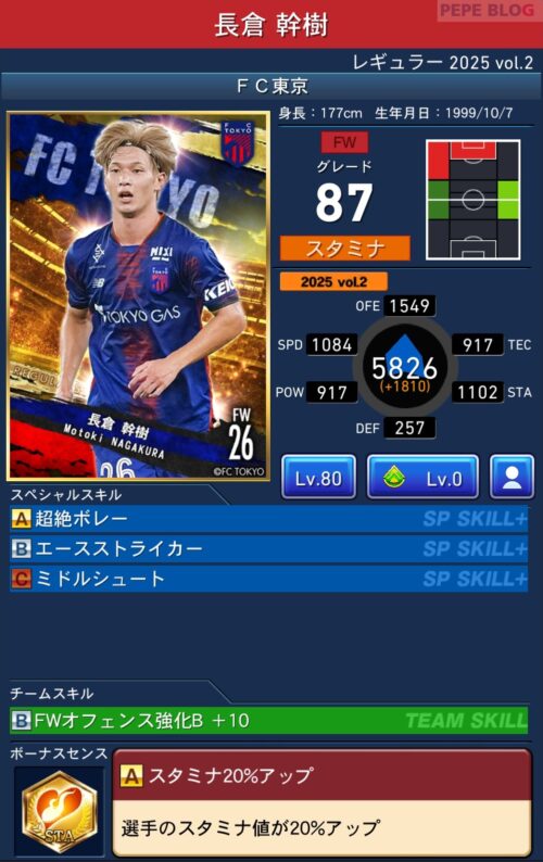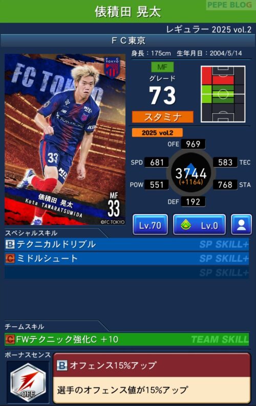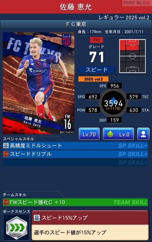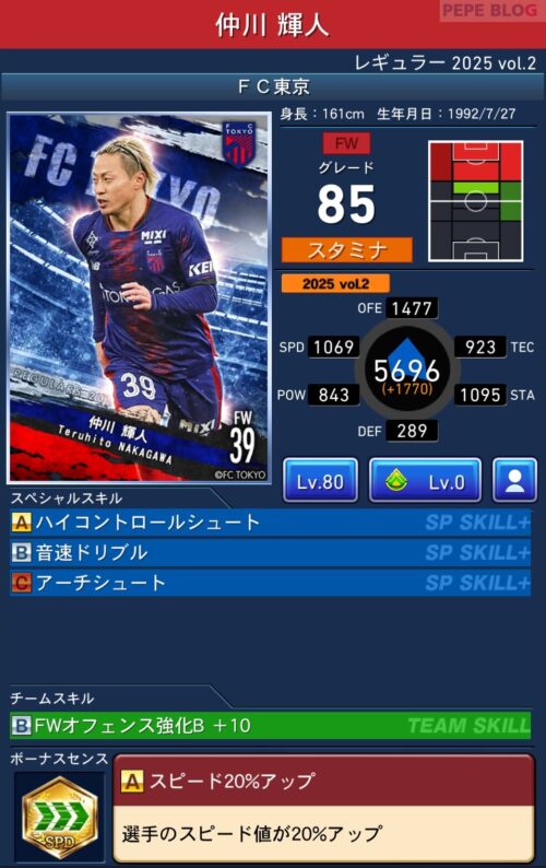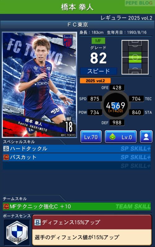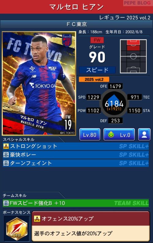 2025年9月19日時点の登録選手情報を反映し、最新データに基づいて所属クラブ、ポジション、スキル等の各種パラメータを更新した選手カードとなります。