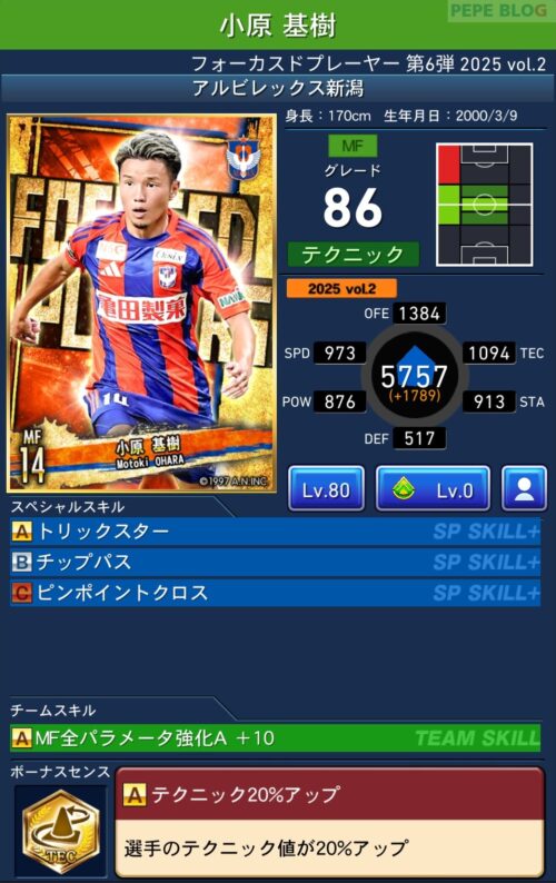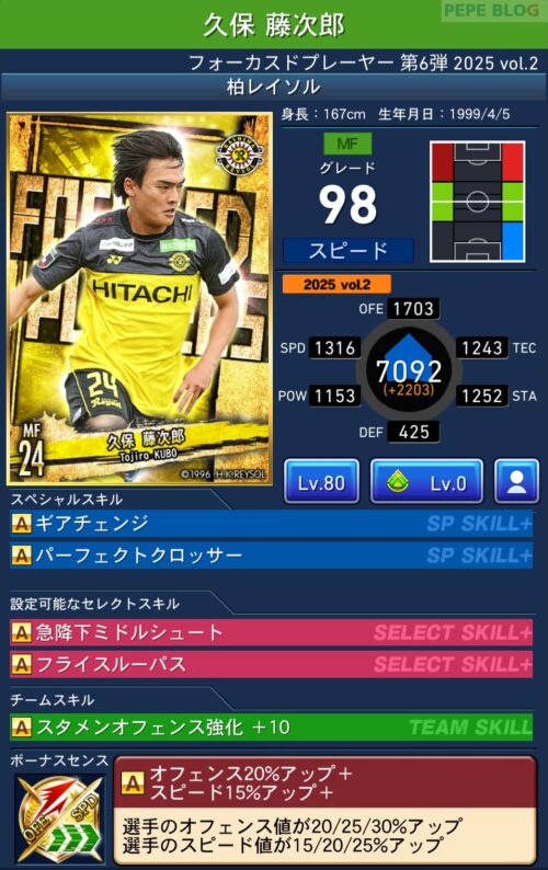 参考【Jクラ】FOCUSED PLAYERS(フォーカスドプレーヤー)2025 第6弾登場_J2編