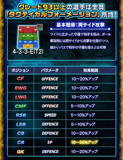 グレード93以上の選手は全員「タクティカルフォーメーション 4-3-3-E(T2)」を所持!