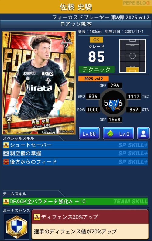 GK:グレード85 佐藤 史騎