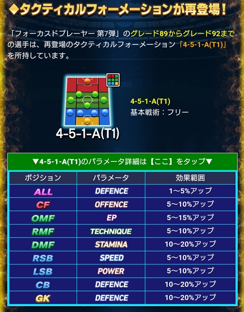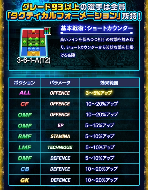 グレード93以上の選手は全員「タクティカルフォーメーション 3-6-1-A(T2)」を所持!