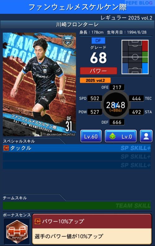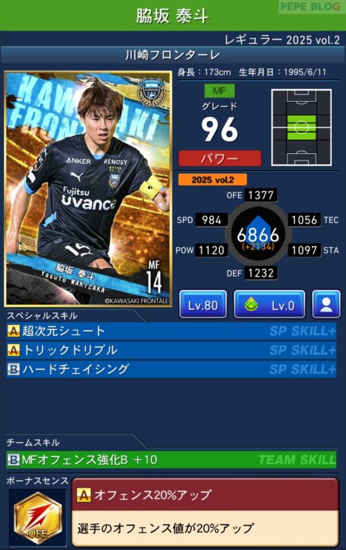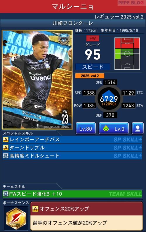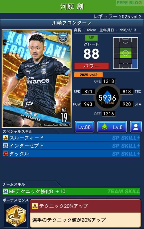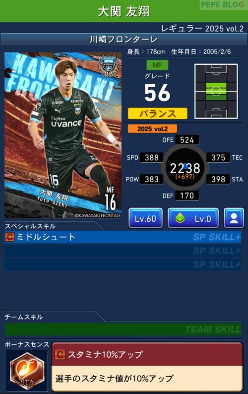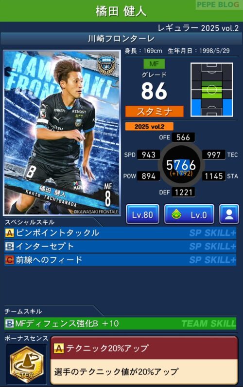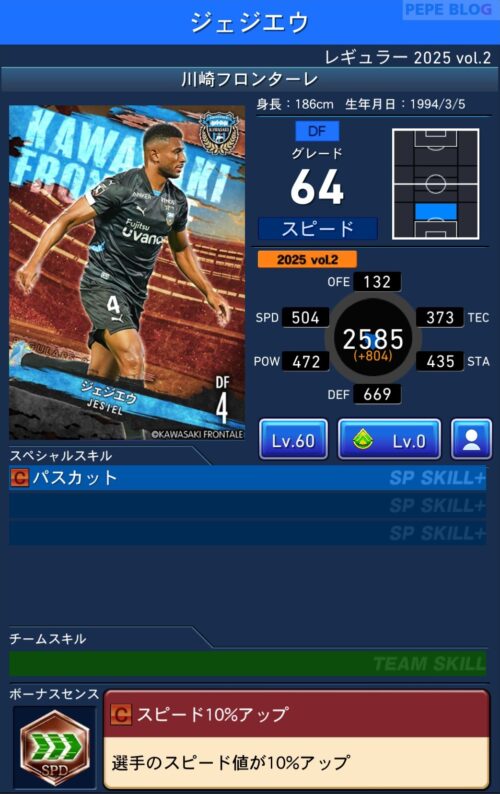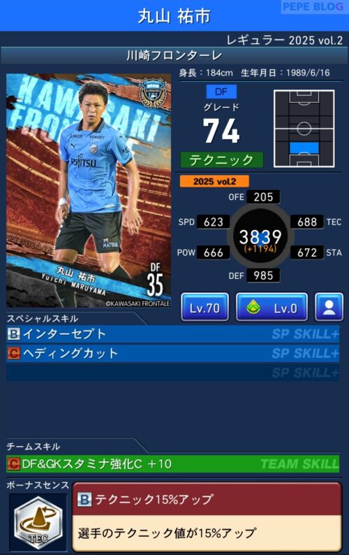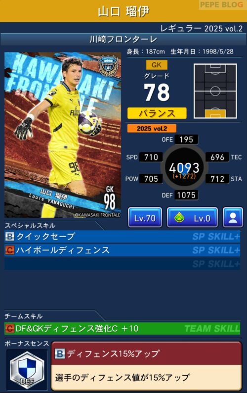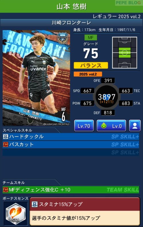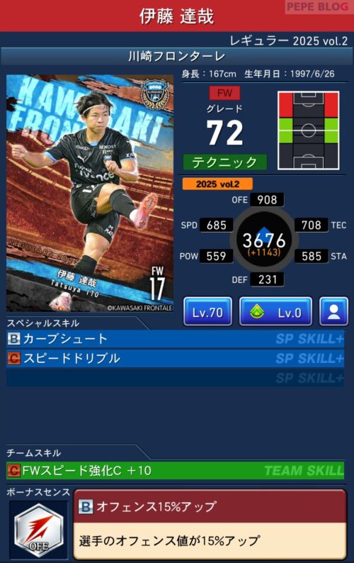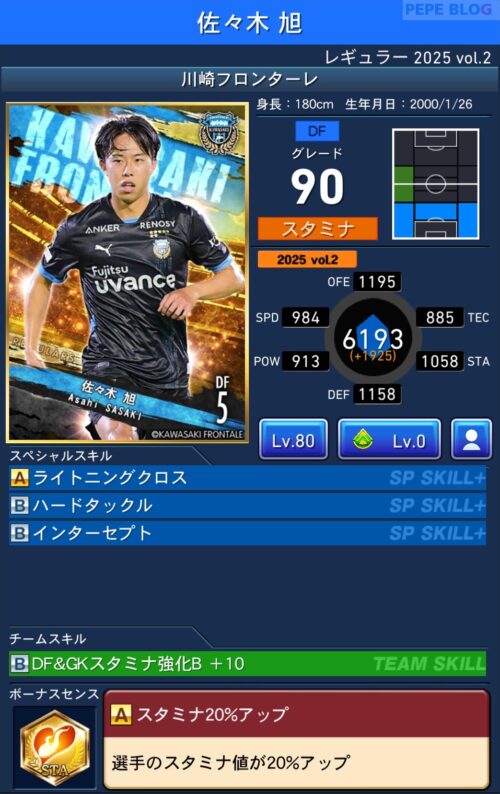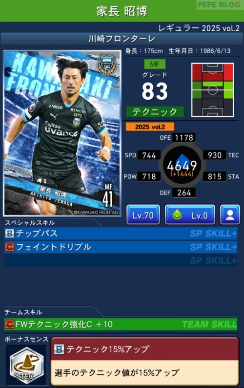 2025年9月19日時点の登録選手情報を反映し、最新データに基づいて所属クラブ、ポジション、スキル等の各種パラメータを更新した選手カードとなります。