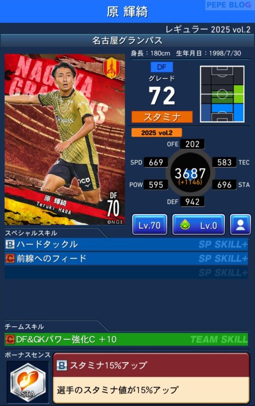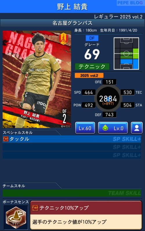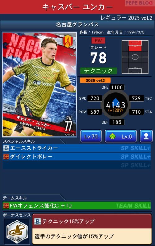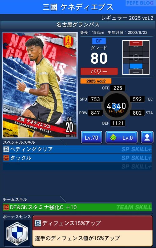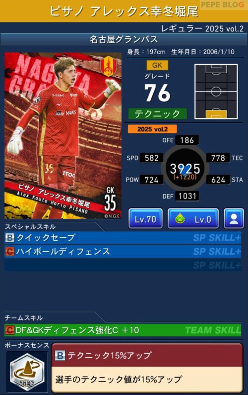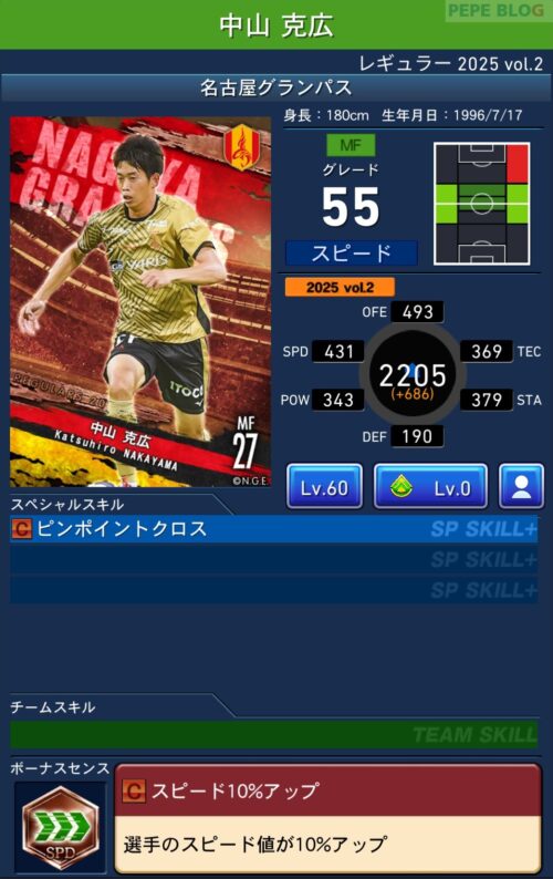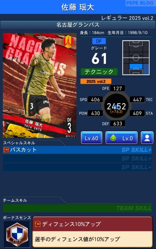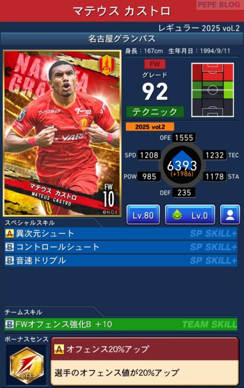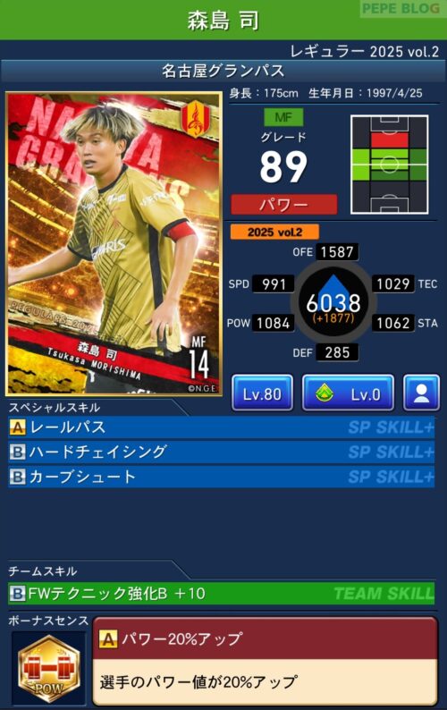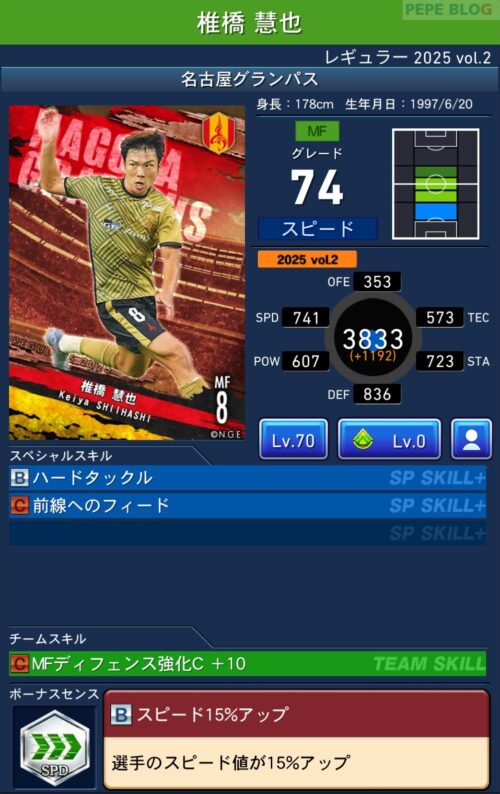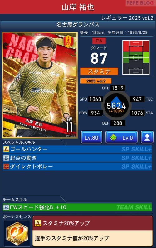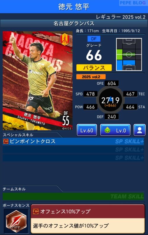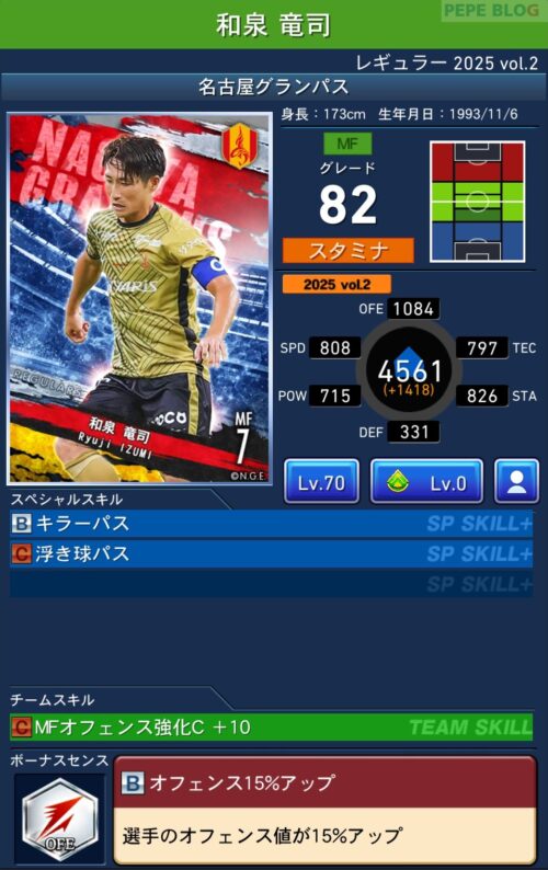 2025年9月19日時点の登録選手情報を反映し、最新データに基づいて所属クラブ、ポジション、スキル等の各種パラメータを更新した選手カードとなります。