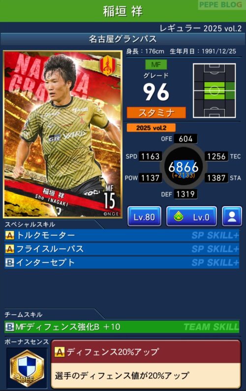 【Jクラ】名古屋グランパス レギュラー2025 vol.2 選手カード一覧