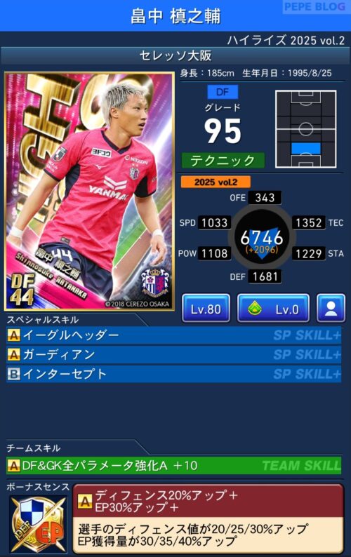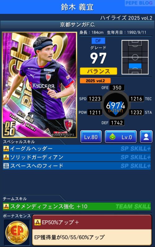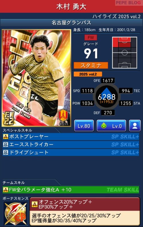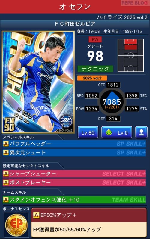 ピックアップ選手は「EP50%アップ+」を所持