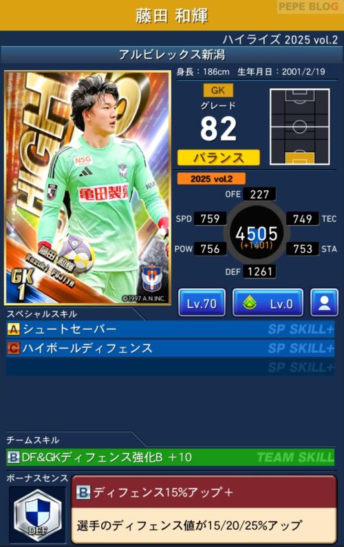 GK:グレード82 藤田 和輝