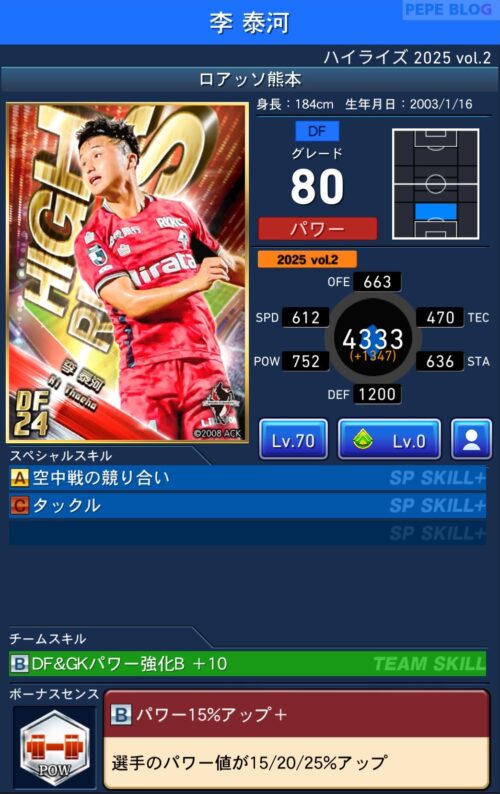 DF:グレード80 李 泰河