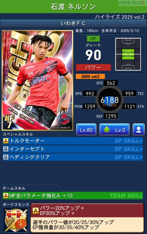上記のピックアップ選手はボーナスセンスに「EP50%アップ+」を搭載しています。