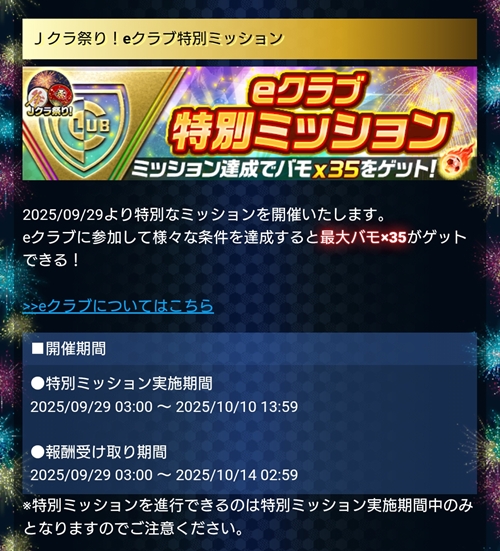 eクラブに参加して様々な条件を達成すると最大バモ×35をゲットできる!
