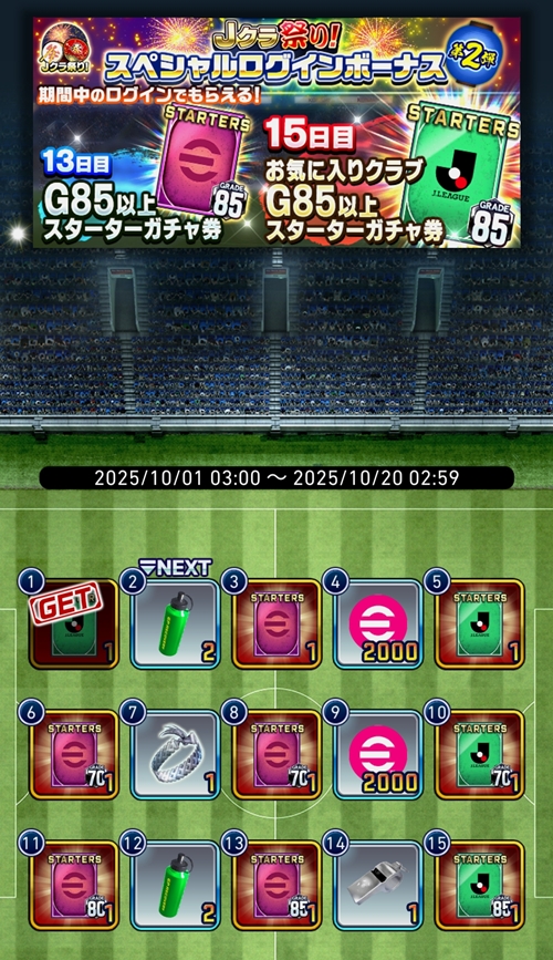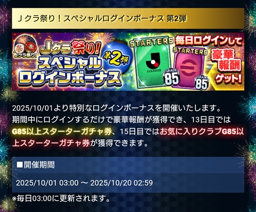 Jクラ祭り!スペシャルログインボーナス 第2弾