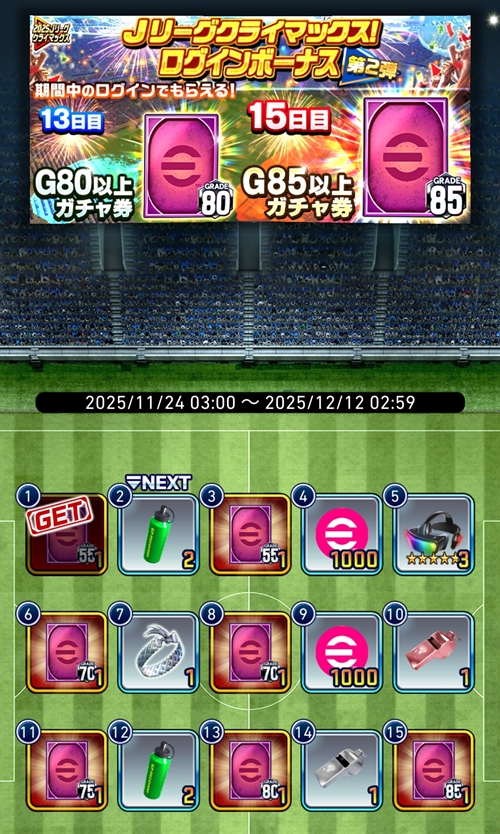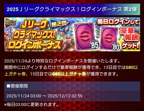 2025Jリーグクライマックス!ログインボーナス 第2弾