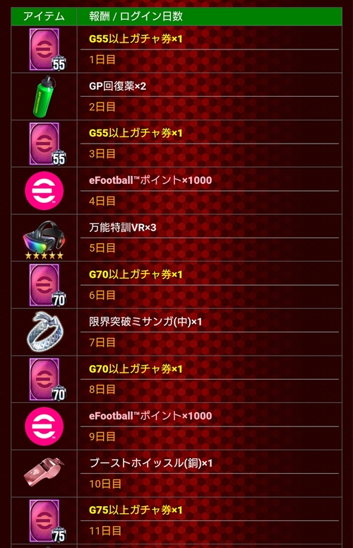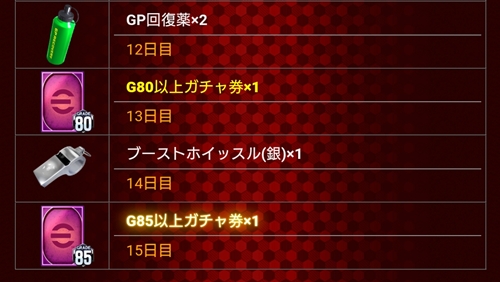 様々な条件を達成することで「霜月コイン」「G80以上ガチャ券」「お気に入りクラブG75以上ガチャ券」、育成用アイテムなどを手に入れることができます。