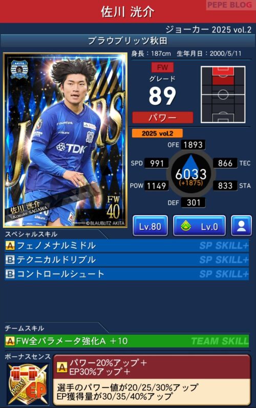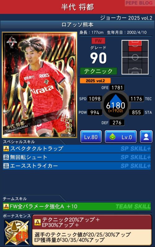 今回の「JOKERS」では以下の選手がセレクトスキルを所持しています。