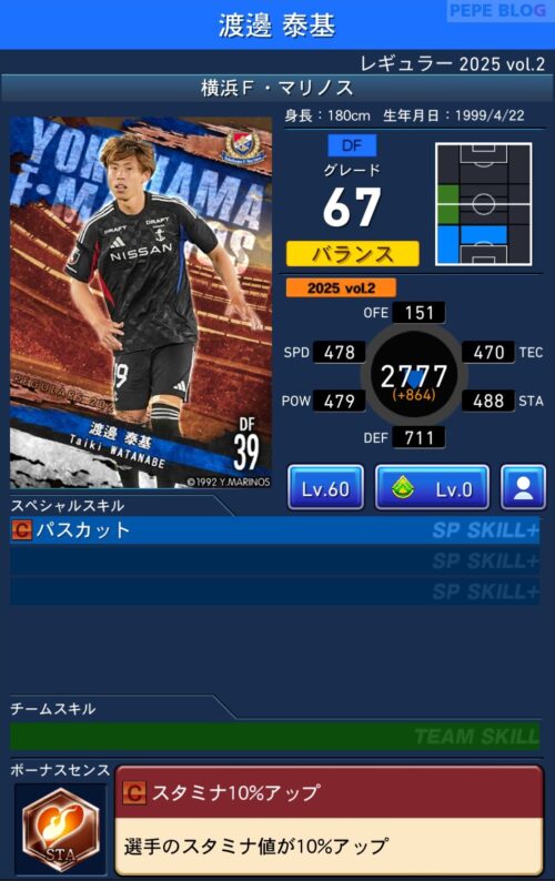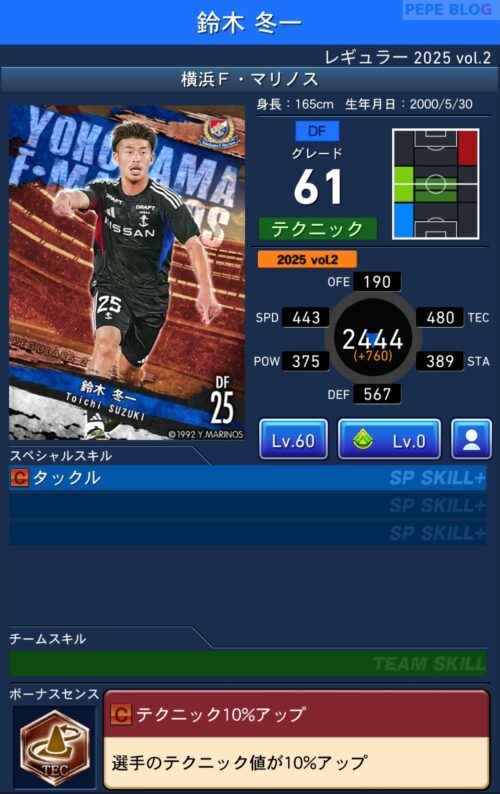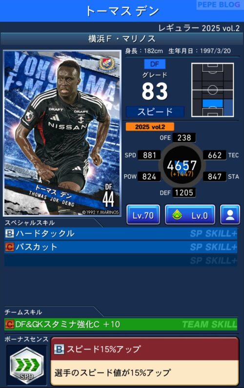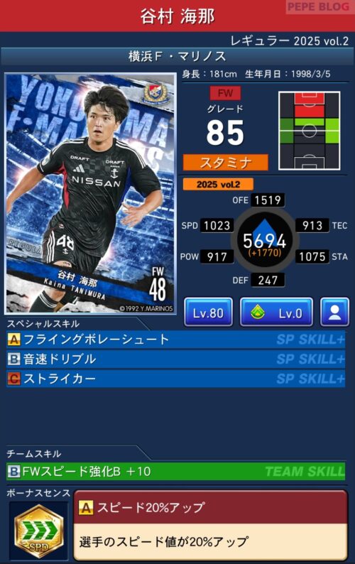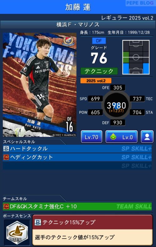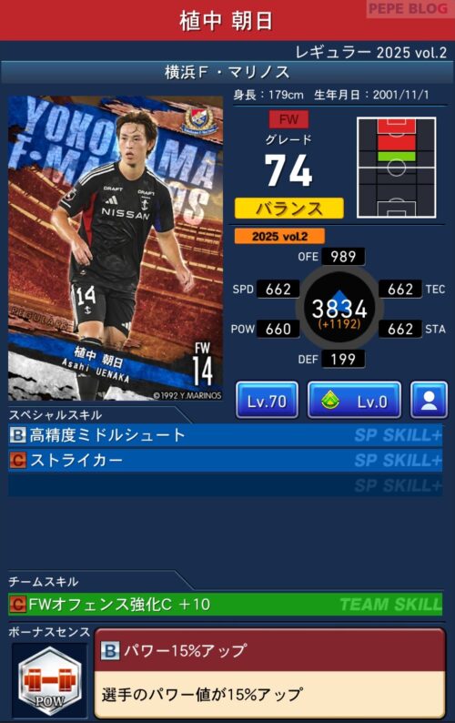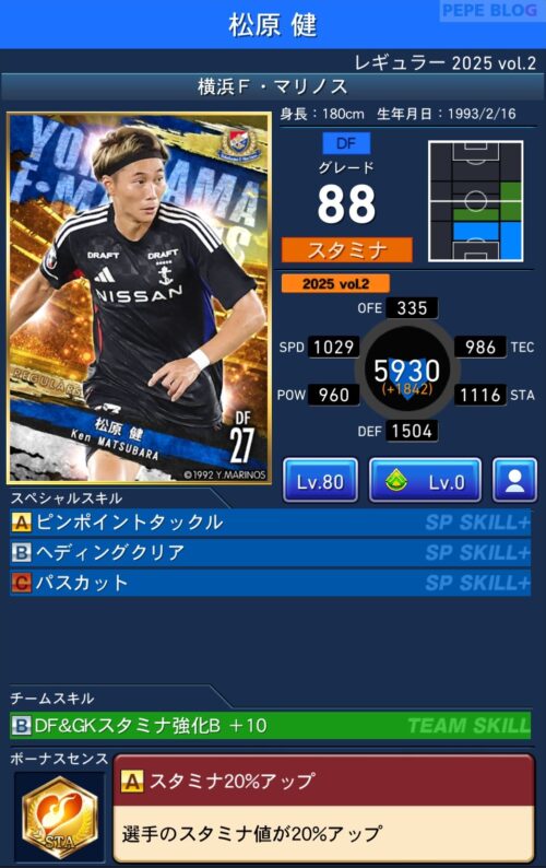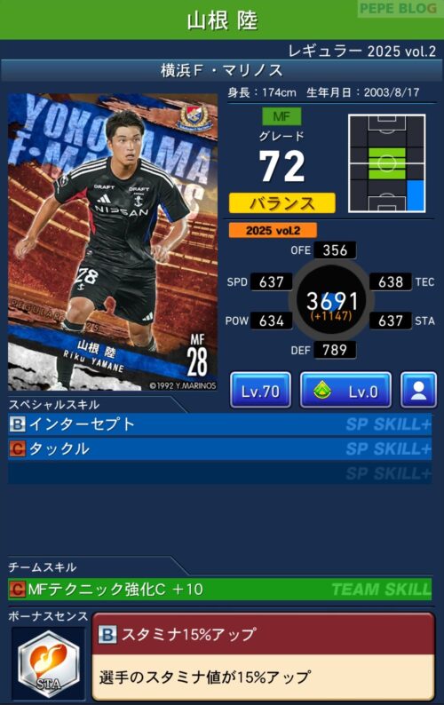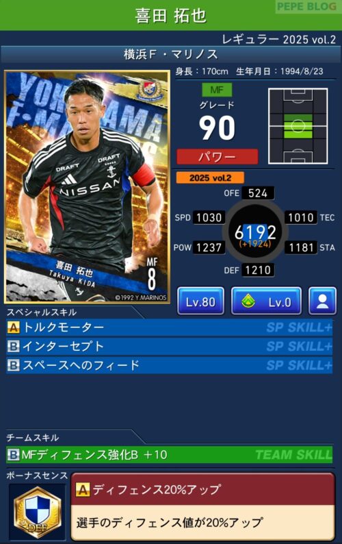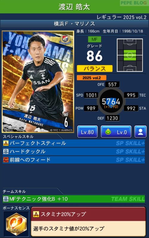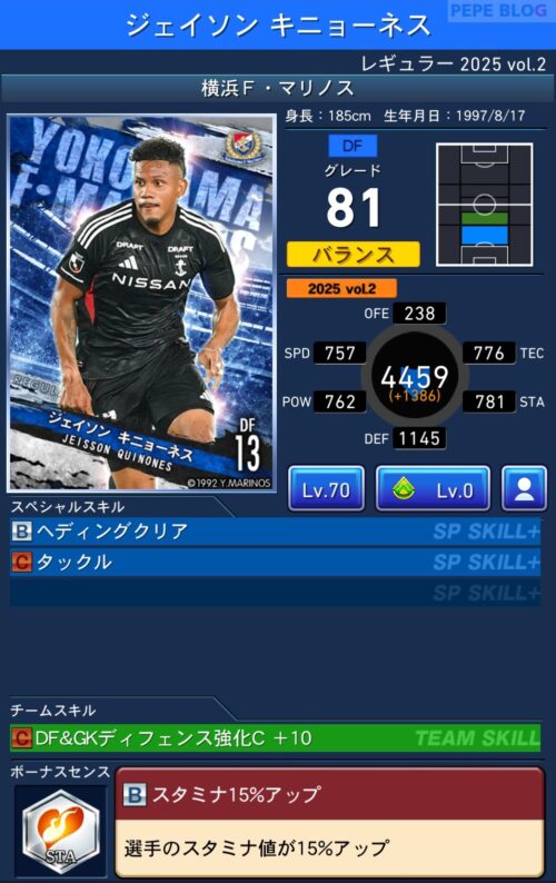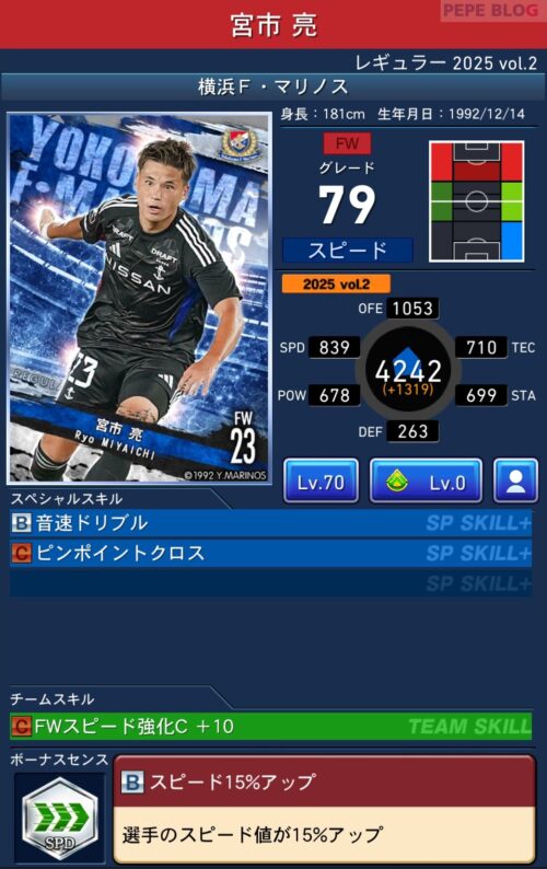 2025年9月19日時点の登録選手情報を反映し、最新データに基づいて所属クラブ、ポジション、スキル等の各種パラメータを更新した選手カードとなります。