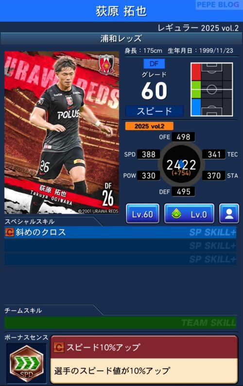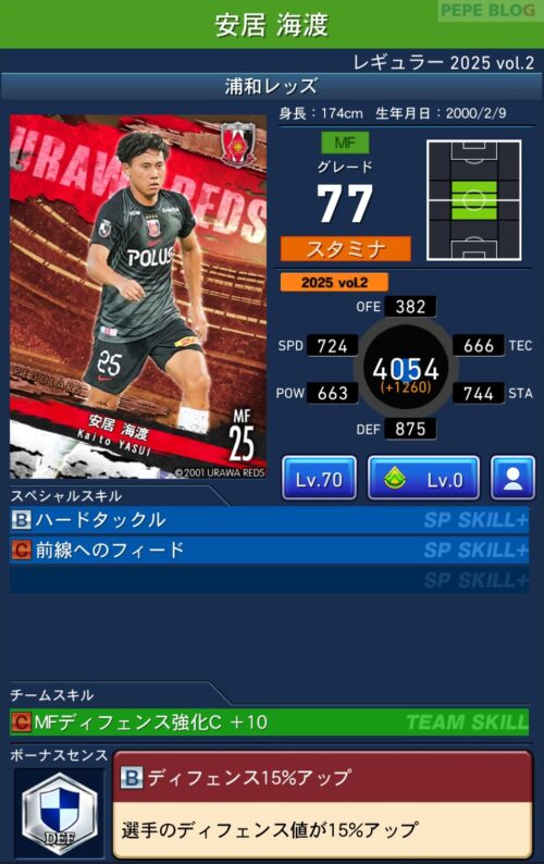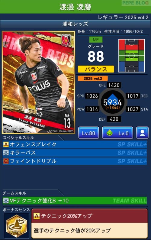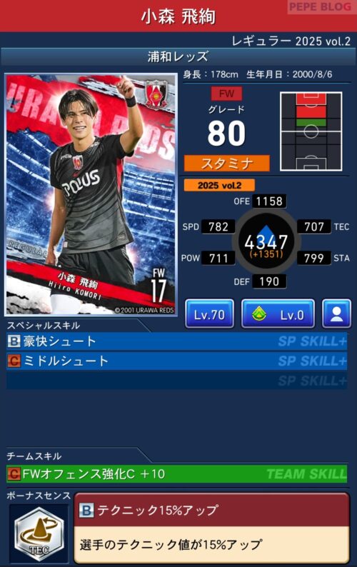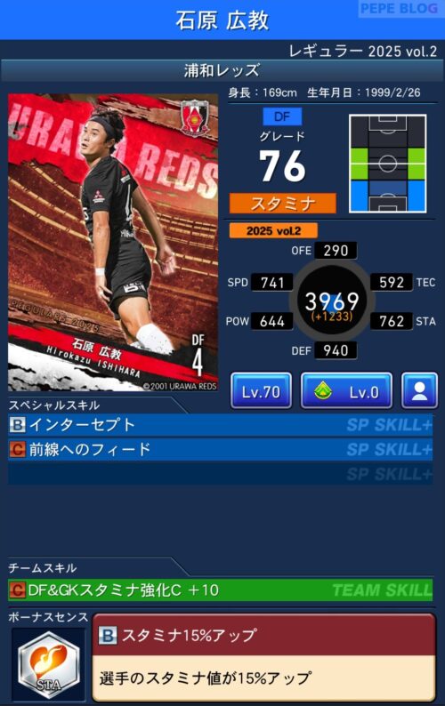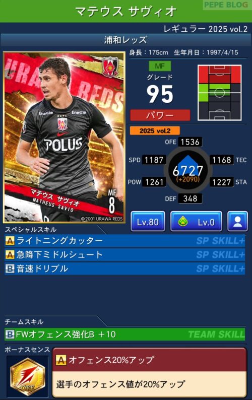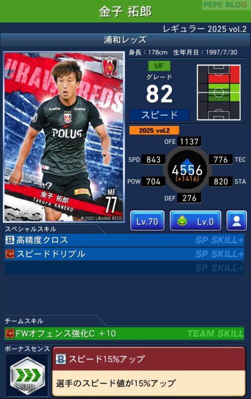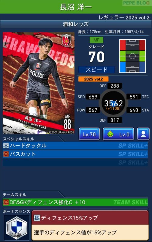 2025年9月19日時点の登録選手情報を反映し、最新データに基づいて所属クラブ、ポジション、スキル等の各種パラメータを更新した選手カードとなります。