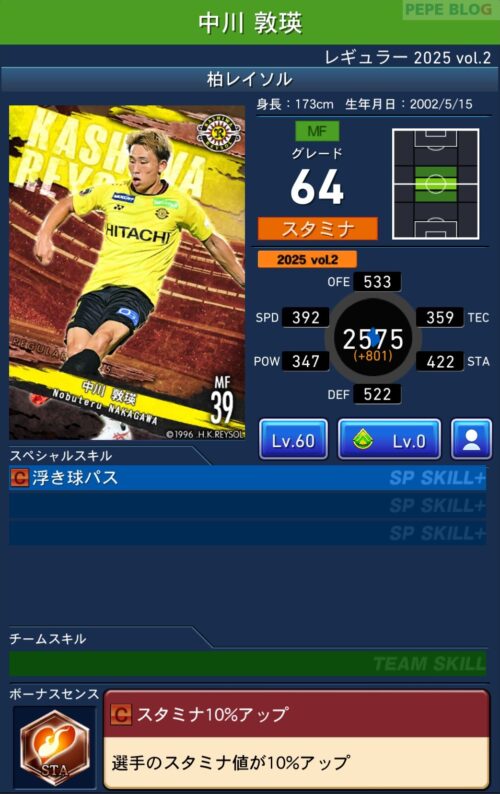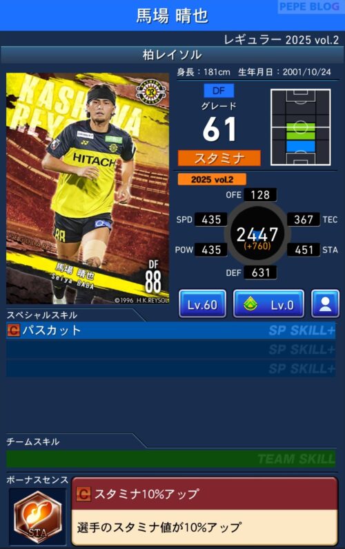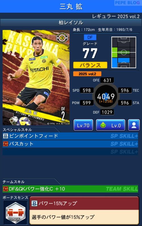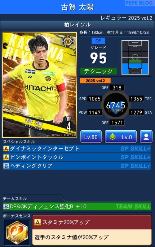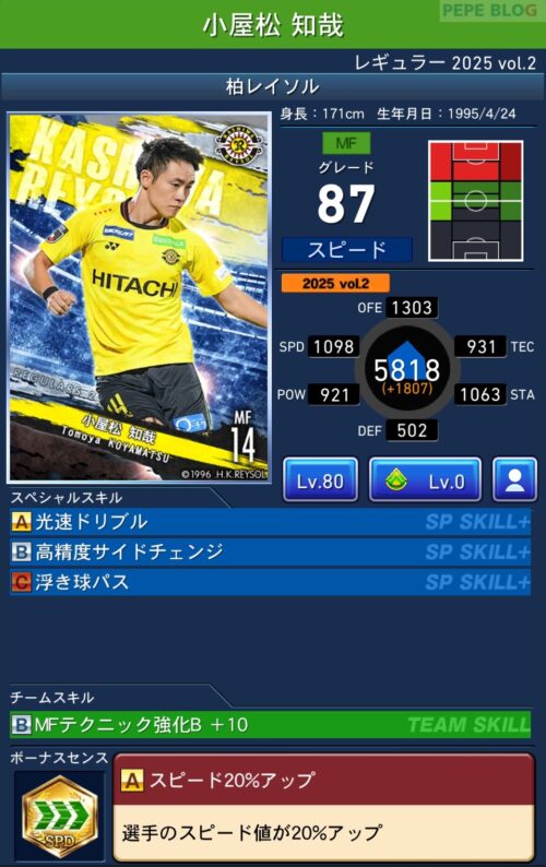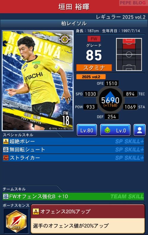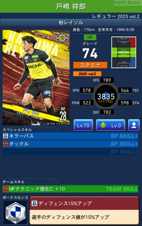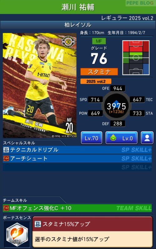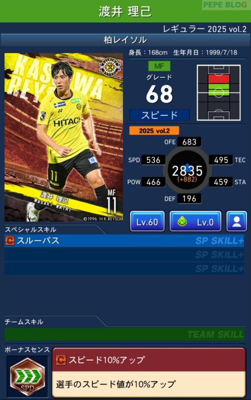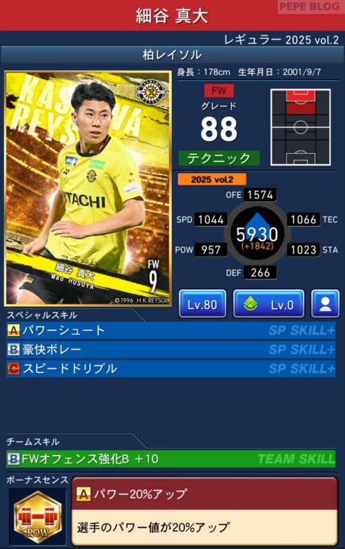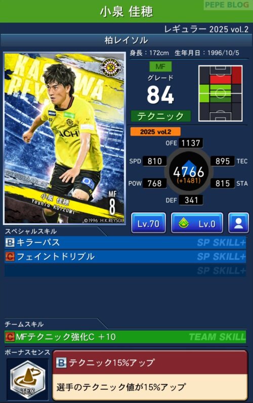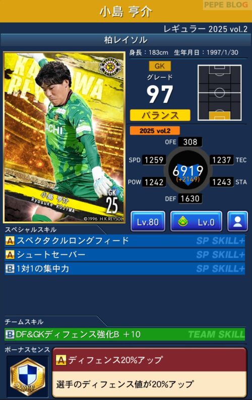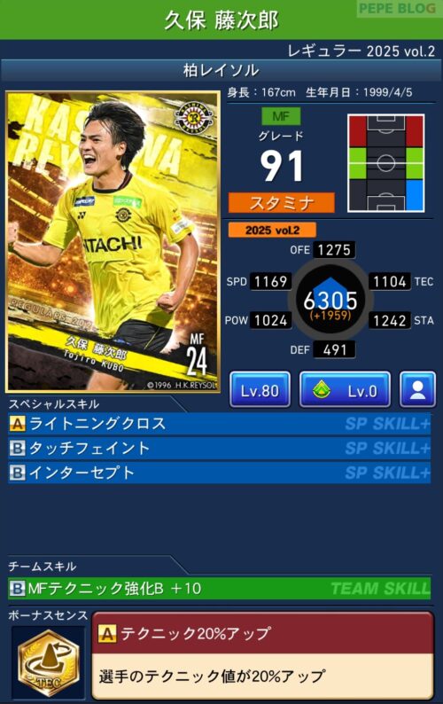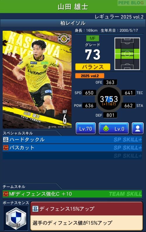 2025年9月19日時点の登録選手情報を反映し、最新データに基づいて所属クラブ、ポジション、スキル等の各種パラメータを更新した選手カードとなります。