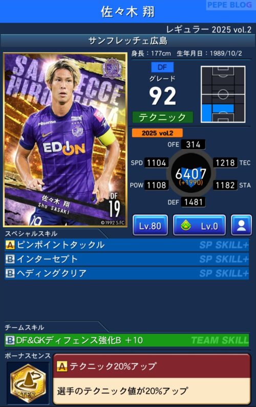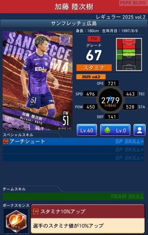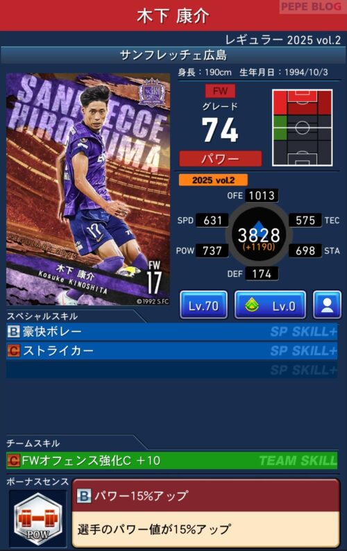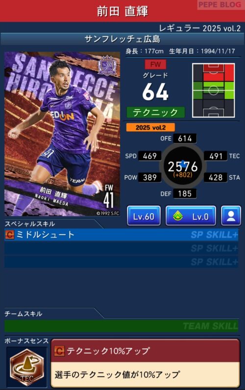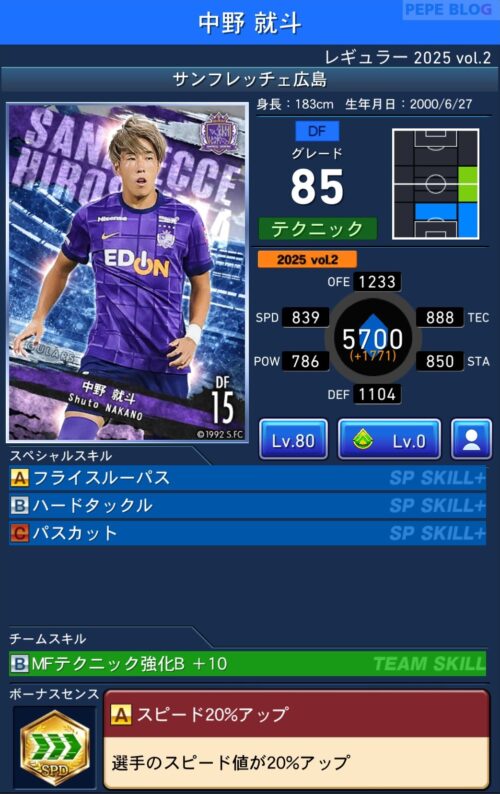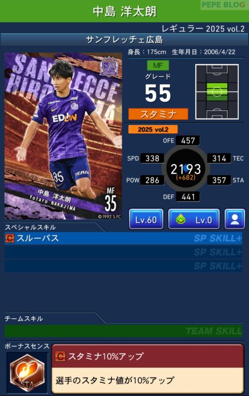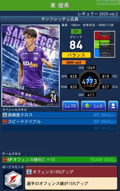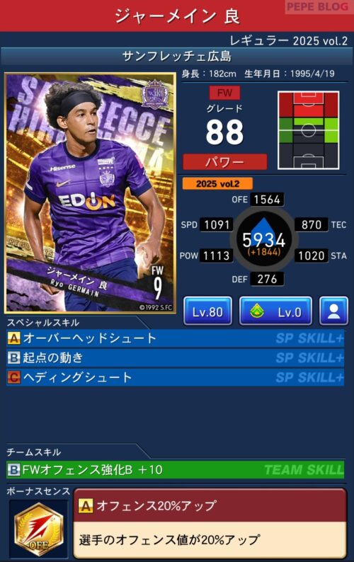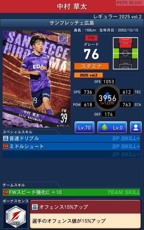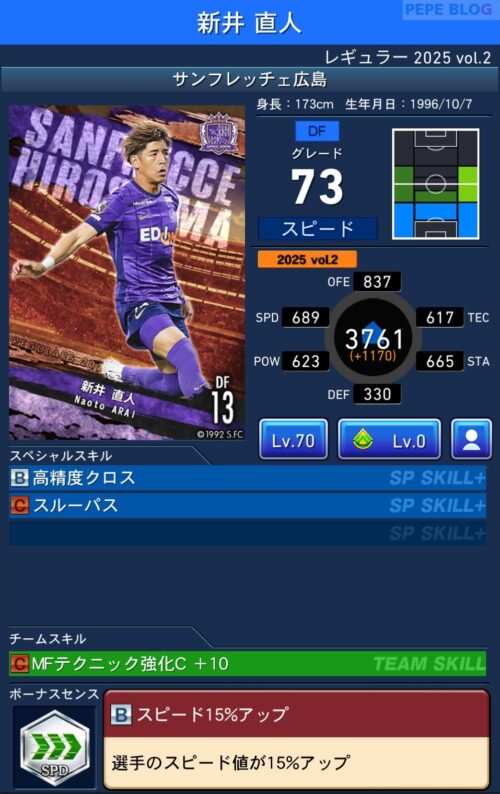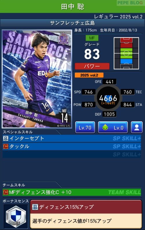 2025年9月19日時点の登録選手情報を反映し、最新データに基づいて所属クラブ、ポジション、スキル等の各種パラメータを更新した選手カードとなります。