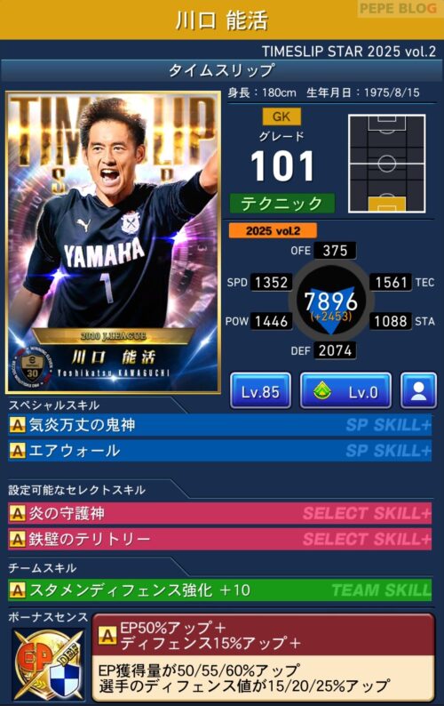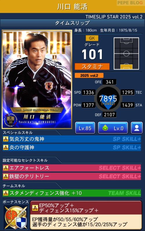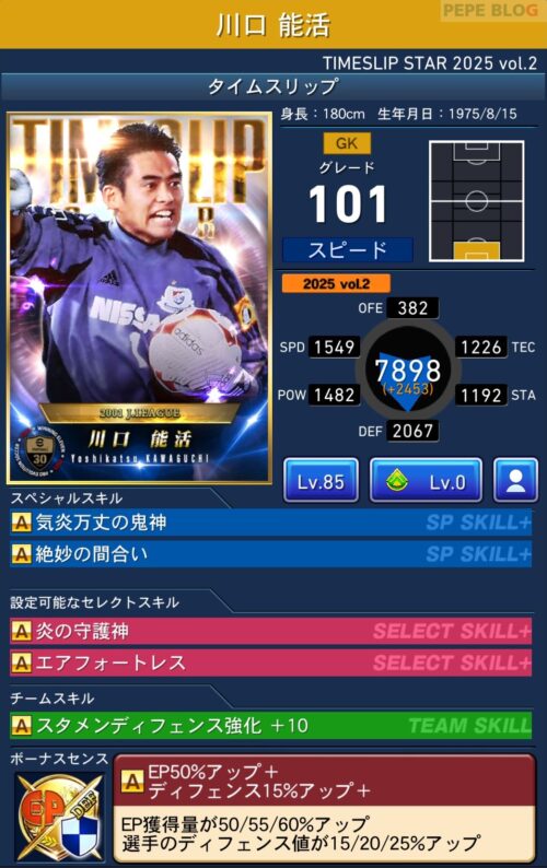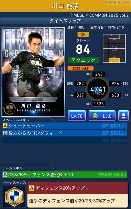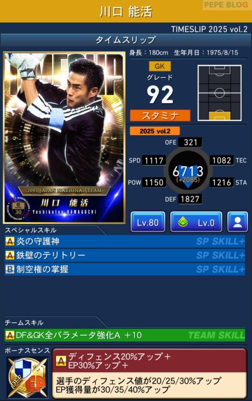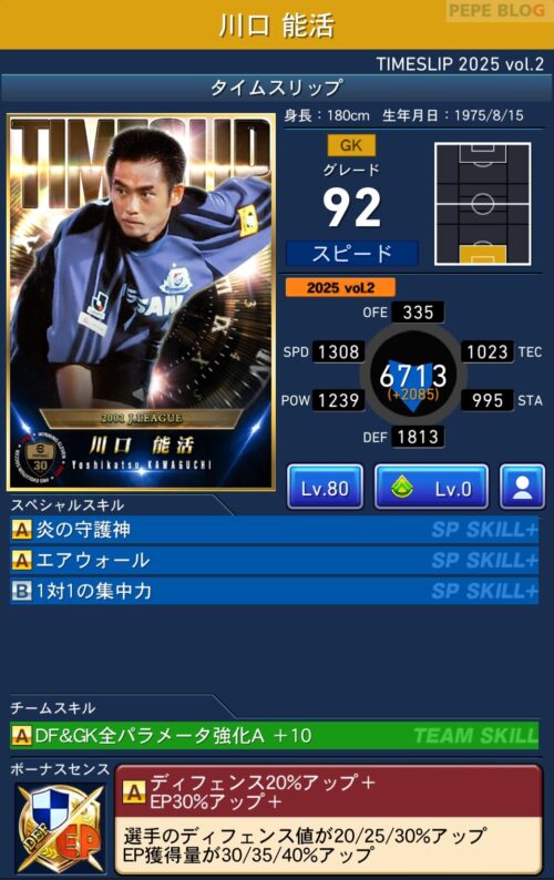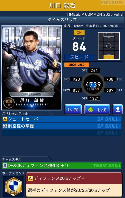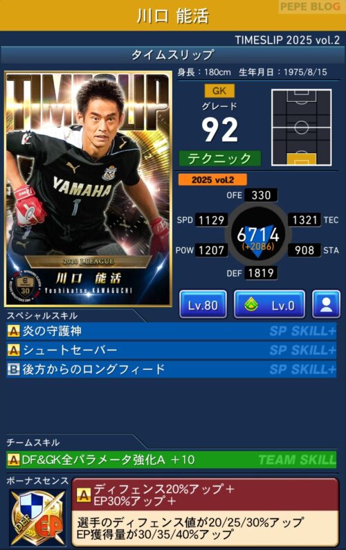 GK:グレード92 川口能活(TIMESLIP 2025 vol.2)
