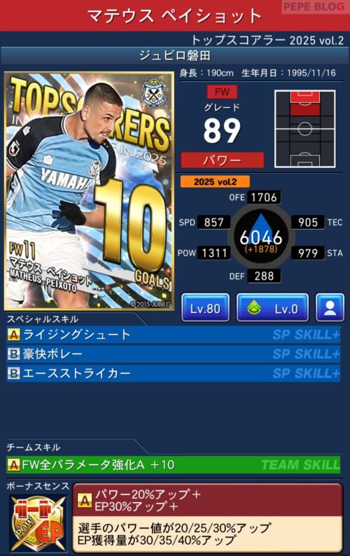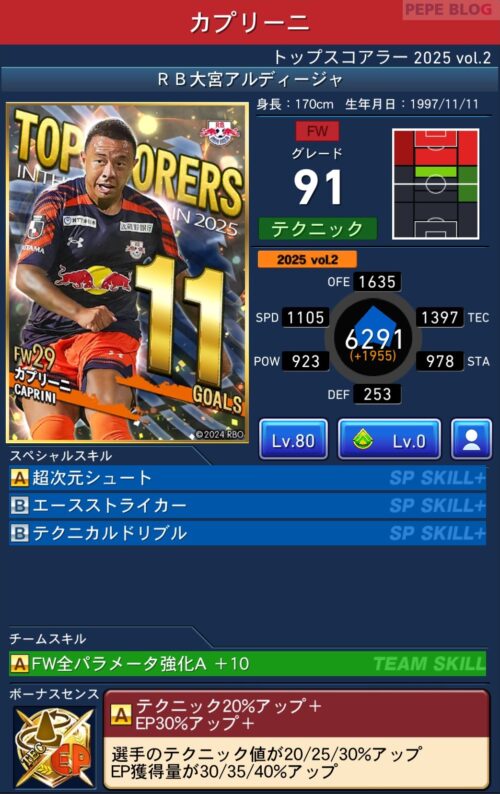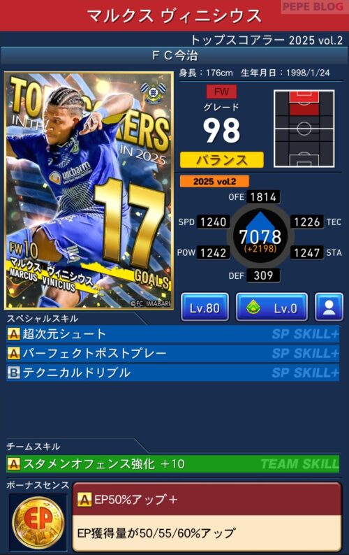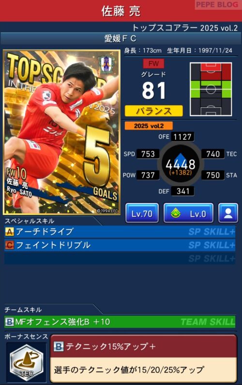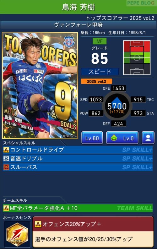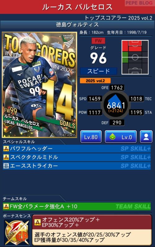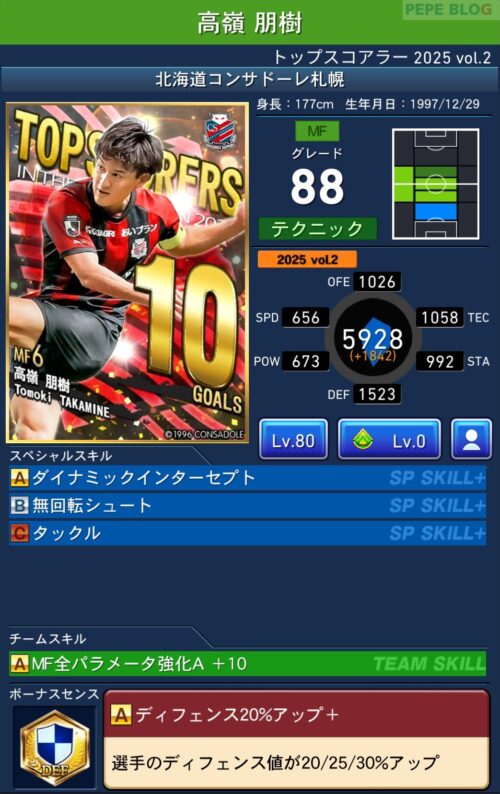 今回の「トップスコアラー」では以下の選手がセレクトスキルを所持しています。