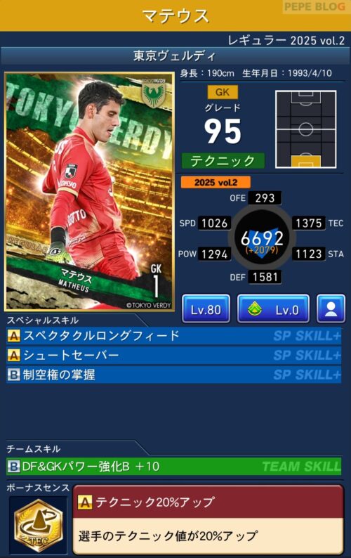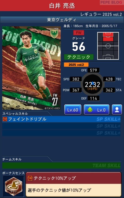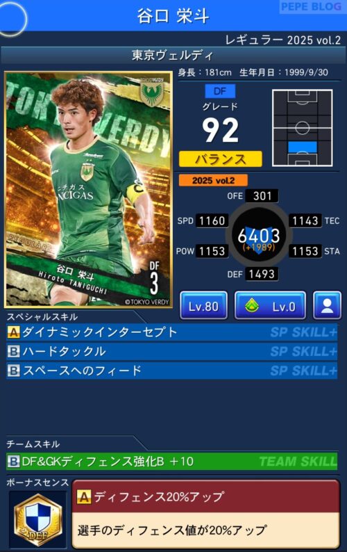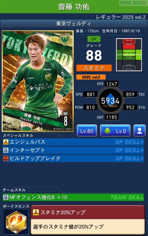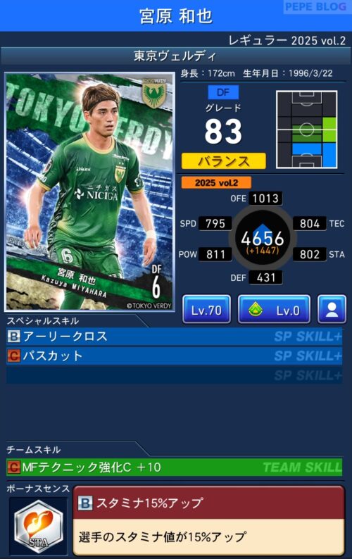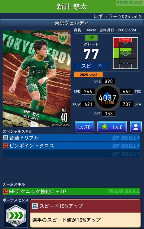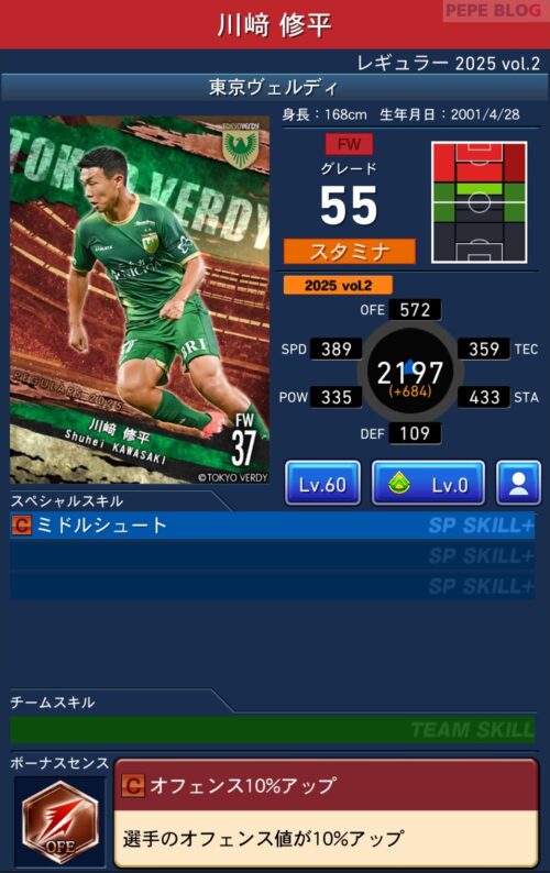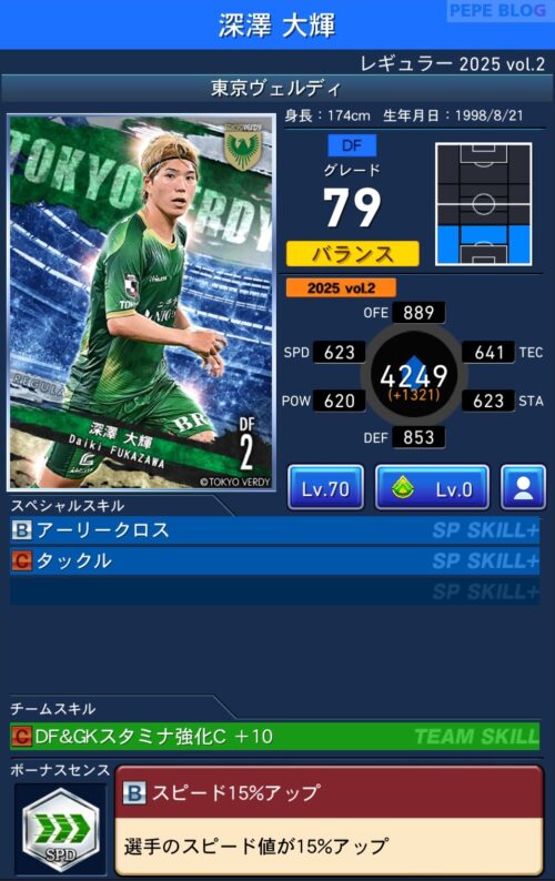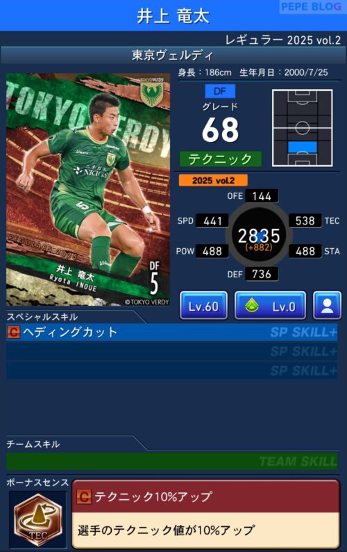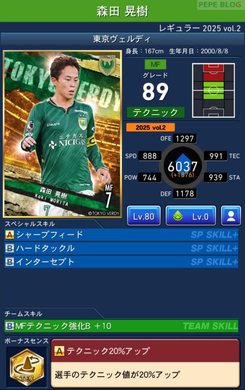 2025年9月19日時点の登録選手情報を反映し、最新データに基づいて所属クラブ、ポジション、スキル等の各種パラメータを更新した選手カードとなります。