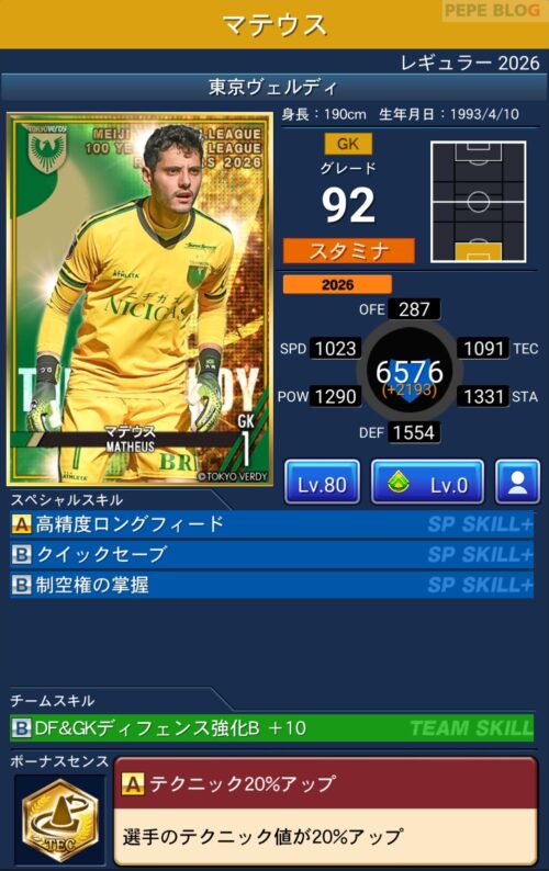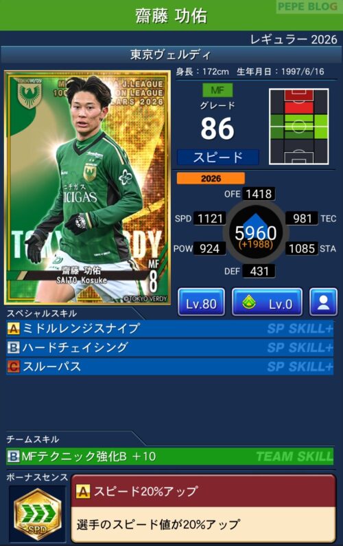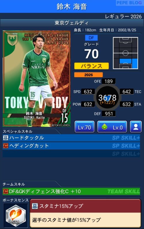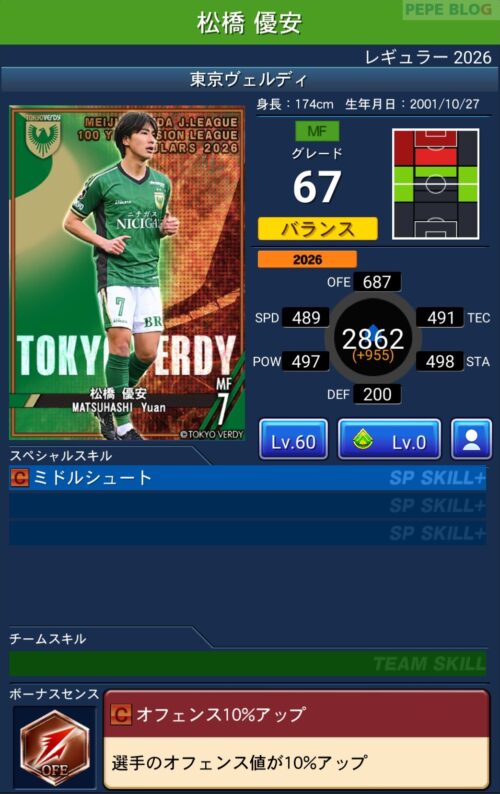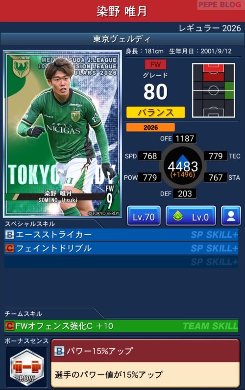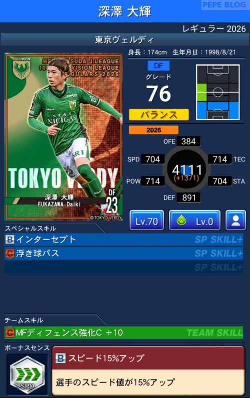 【Jクラ】東京ヴェルディ レギュラー2026選手カード一覧